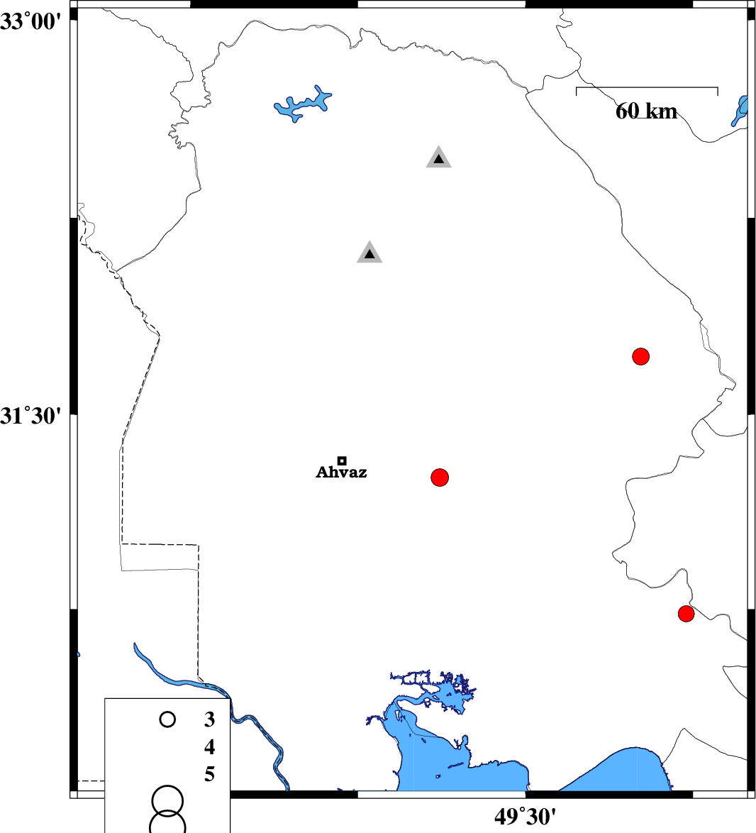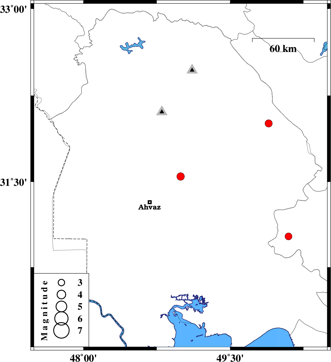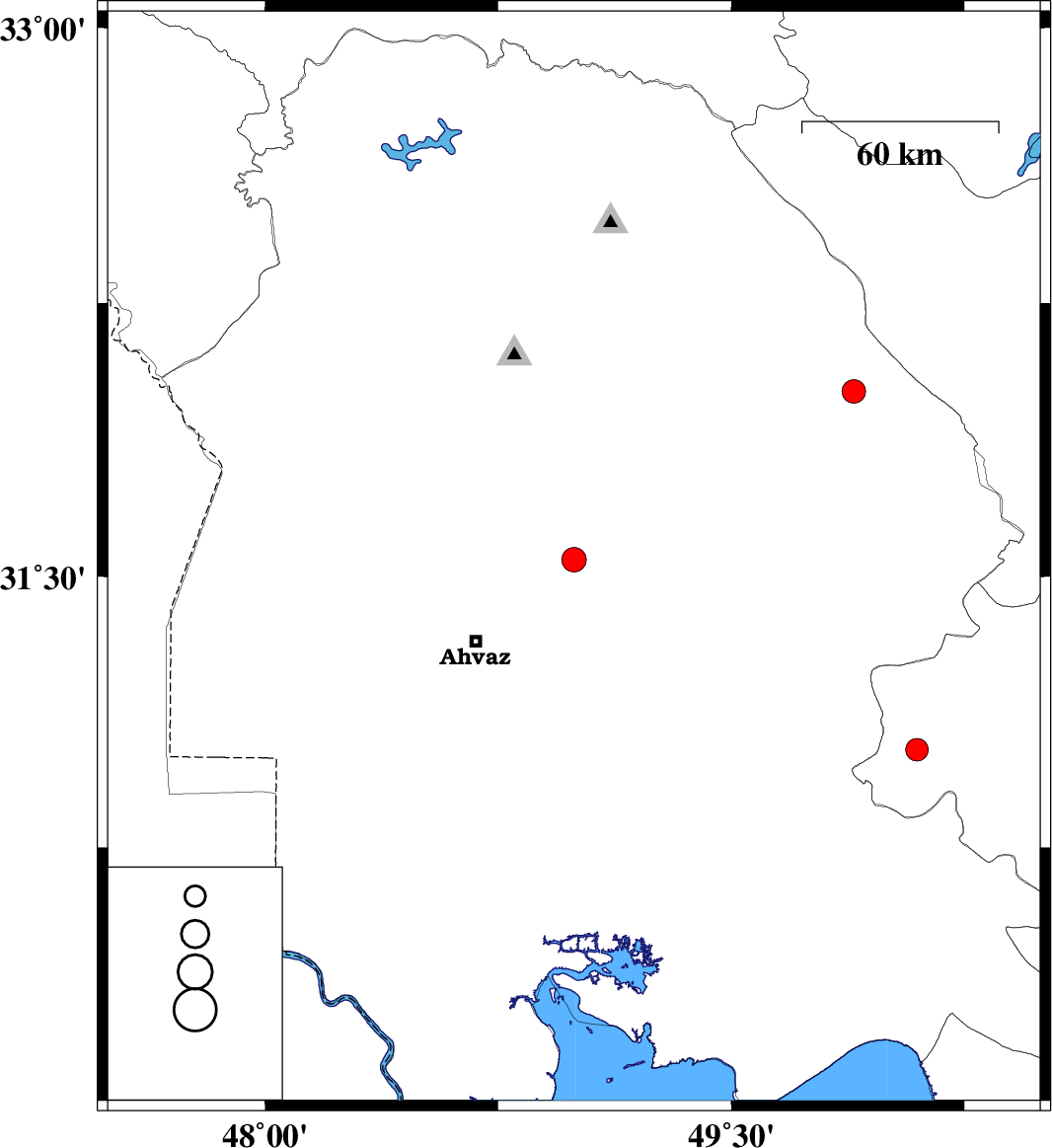 | 2022/10/01 | 21:19:57.7 | 00:49:57.7 | 31.545 | 48.994 | 13 | ML:3.5 | Khoozestan Province, 39 km North-East of Ahvaz | ||