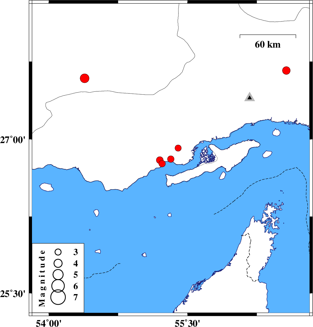 | 2022/10/04 | 01:02:59.3 | 04:32:59.3 | 26.763 | 55.225 | 12 | ML:3.2 | Hormozgan Province, 46 km North-East of Bandar-e lengeh | ||