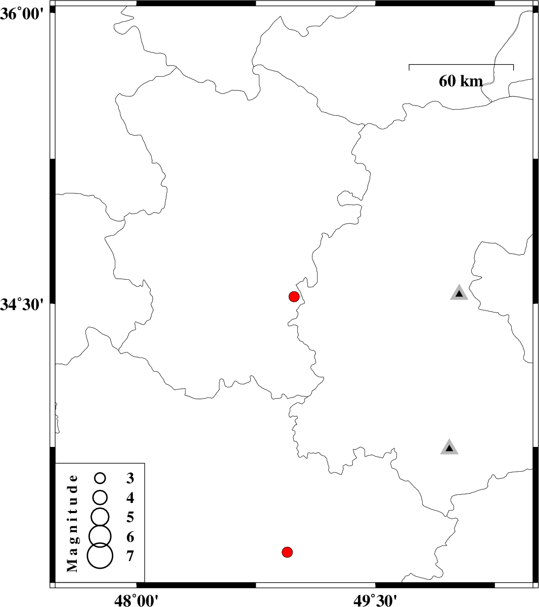 | 2022/10/11 | 05:12:50.8 | 08:42:50.8 | 34.535 | 48.989 | 12 | ML:3 | Hamedan Province, 31 km North-East of Malayer | ||