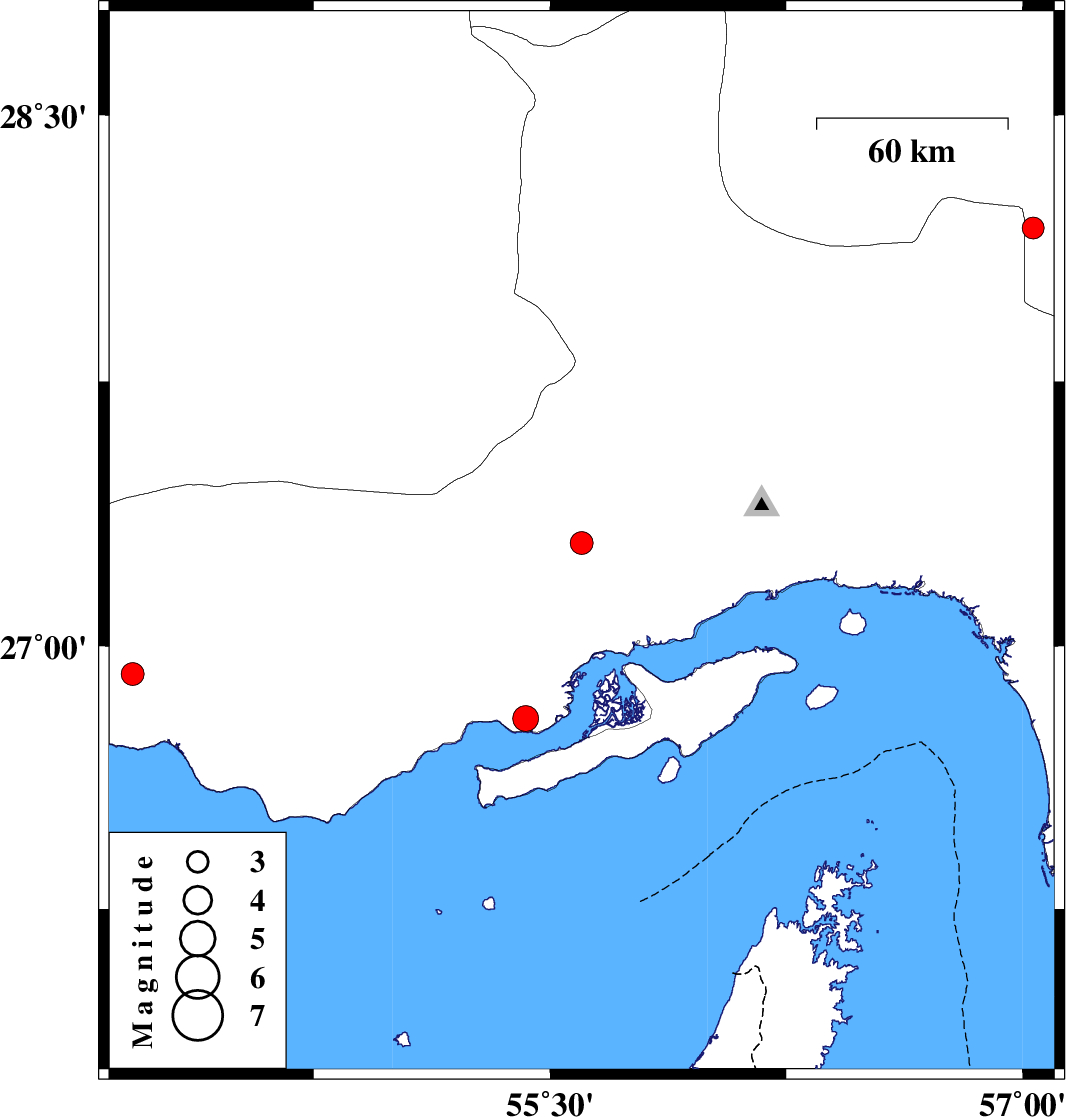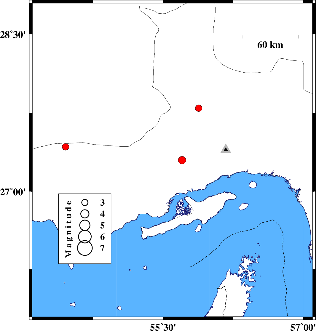 | 2022/10/29 | 12:34:22.8 | 16:04:22.8 | 27.292 | 55.6 | 12 | ML:3.2 | Hormozgan Province, 68 km North-West of Bandar-e abbas | ||