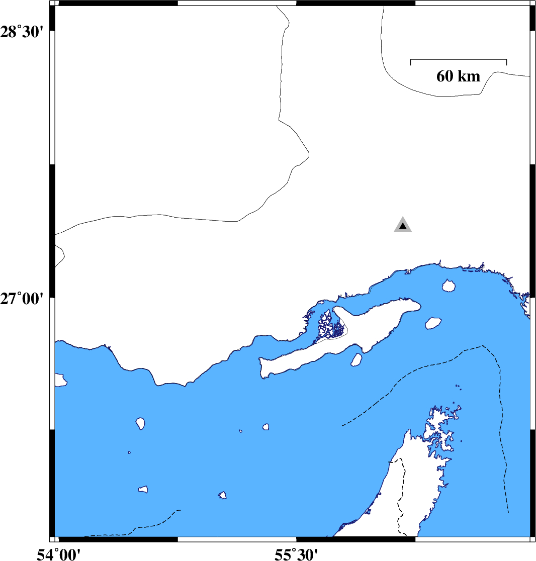 | 2022/10/24 | 11:21:08.8 | 14:51:08.8 | 26.793 | 55.423 | 12 | ML:3.6 | Hormozgan Province, 64 km North-East of Bandar-e lengeh |