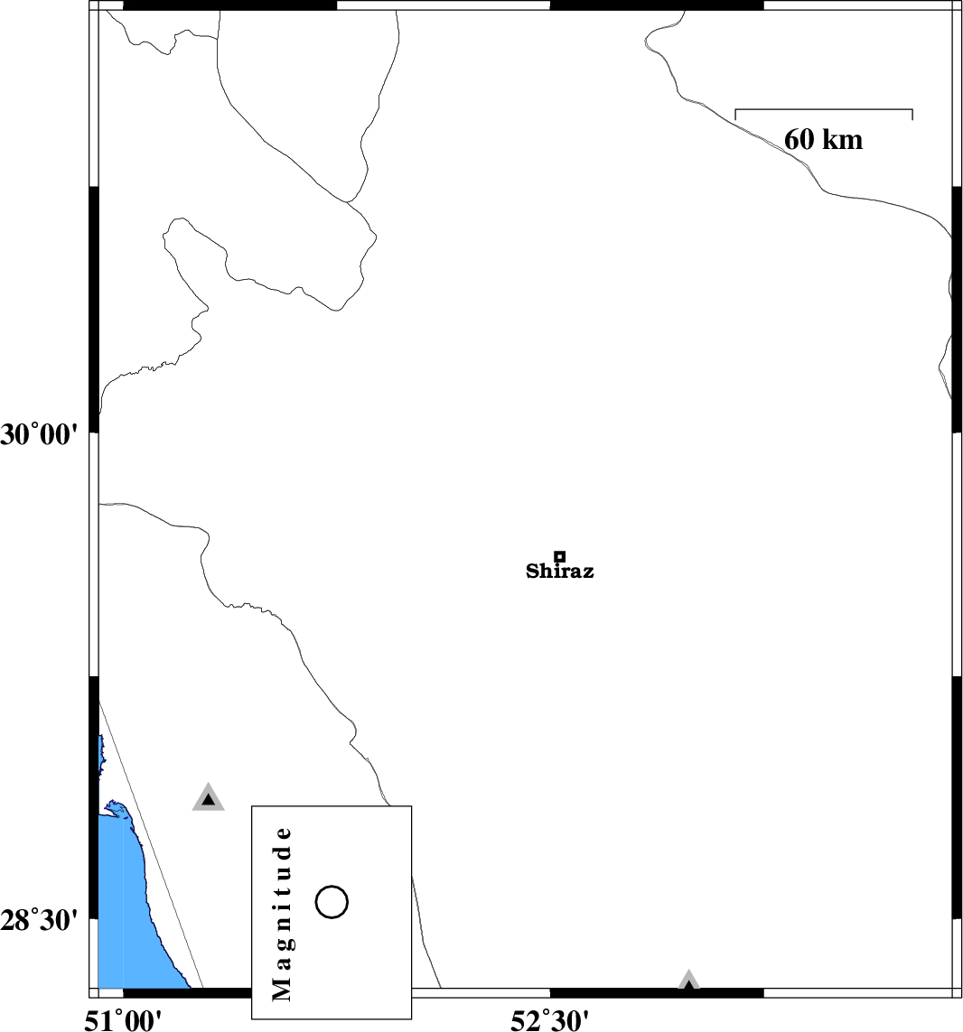 | 2022/10/31 | 01:12:28.6 | 04:42:28.6 | 29.784 | 52.412 | 16 | ML:3.4 | Fars Province, 22 km North-West of Shiraz | ||