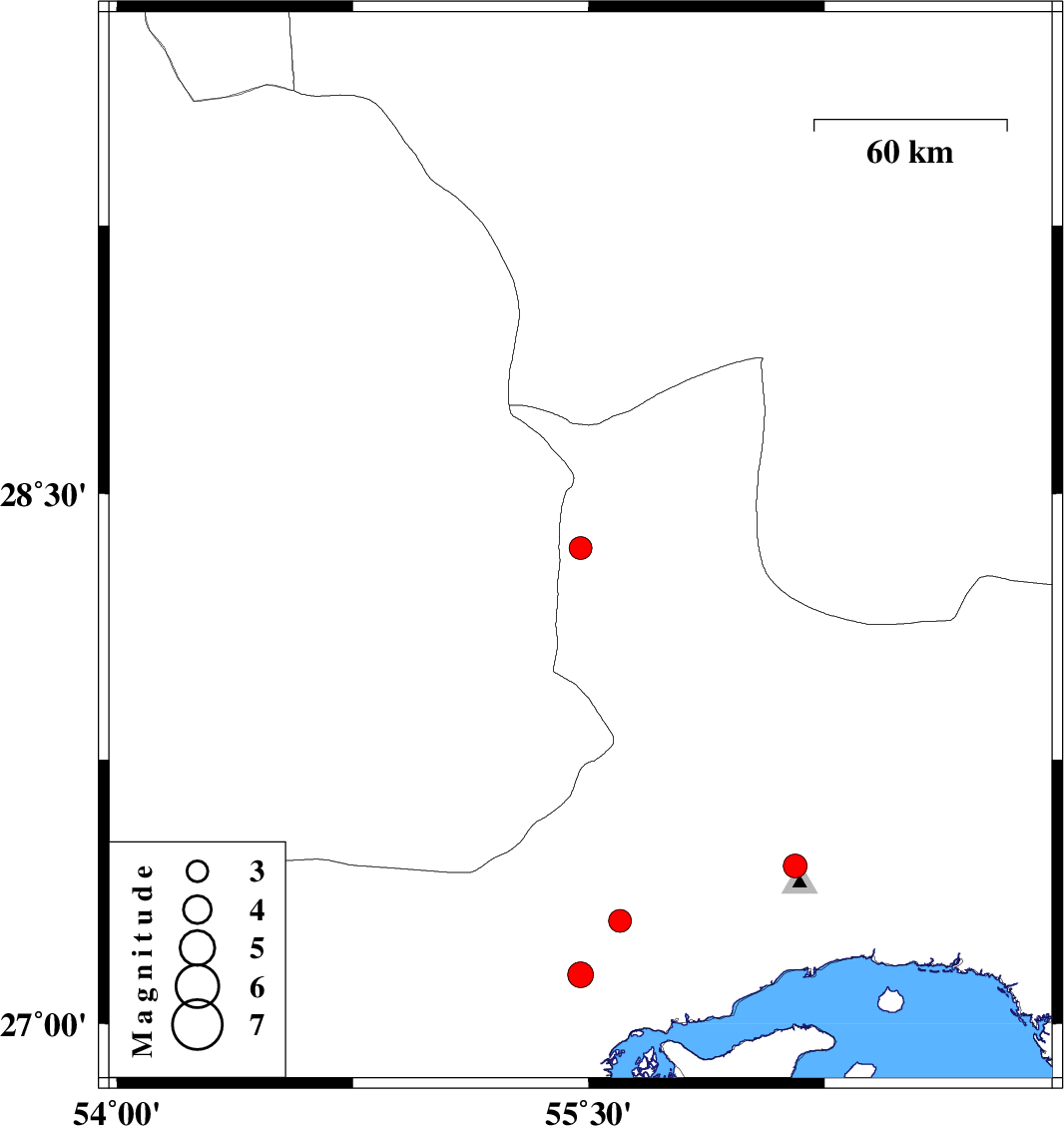 | 2022/10/29 | 12:34:22.8 | 16:04:22.8 | 27.292 | 55.6 | 12 | ML:3.2 | Hormozgan Province, 68 km North-West of Bandar-e abbas |