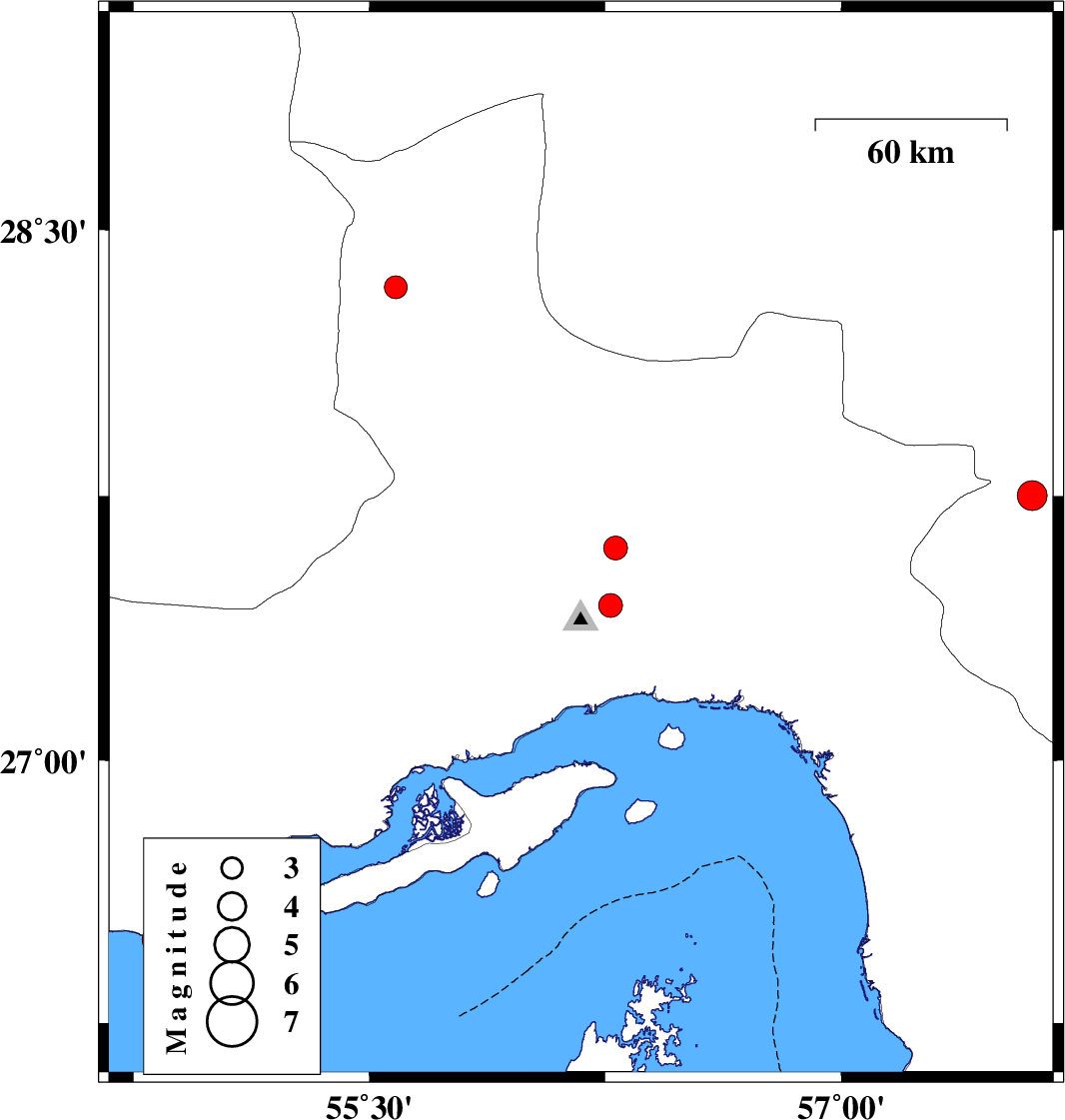 | 2022/11/02 | 08:07:05.8 | 11:37:05.8 | 26.497 | 54.715 | 12 | ML:4.2 | Persian Gulf, 14 km -West of Bandar-e lengeh |