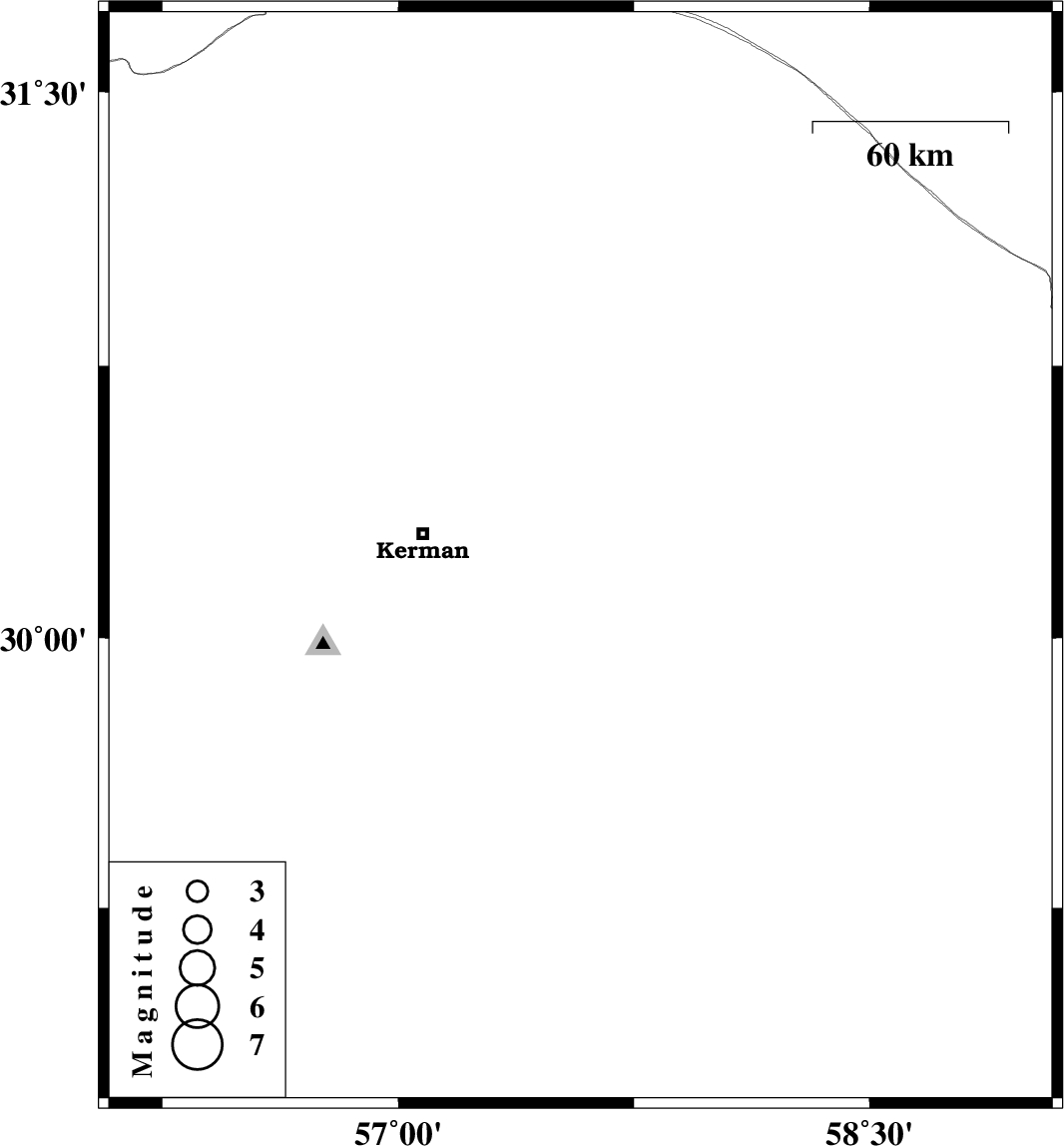 | 2022/11/12 | 22:48:02.7 | 02:18:02.7 | 30.219 | 57.58 | 12 | ML:4.5 | Kerman Province, 49 km -East of Kerman |