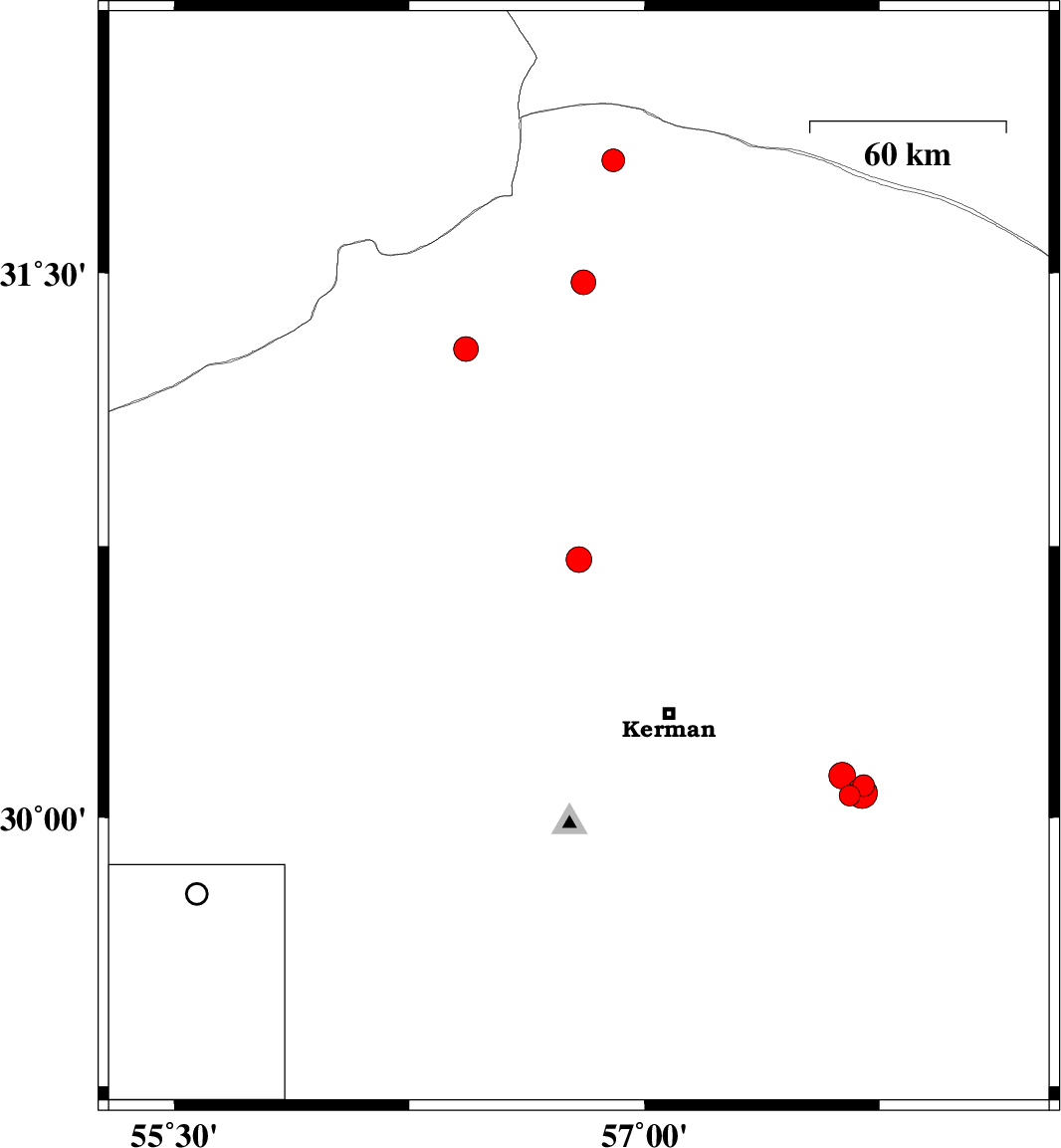 | 2022/07/15 | 17:59:02.3 | 22:29:02.3 | 30.115 | 57.631 | 12 | ML:3.8 | Kerman Province, 56 km South-East of Kerman | ||