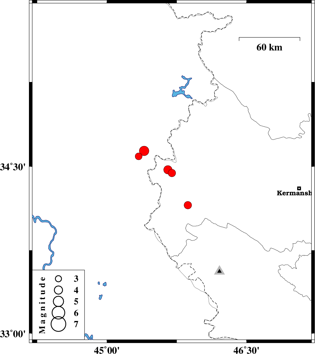 | 2022/08/03 | 23:44:30.9 | 04:14:30.9 | 34.443 | 45.698 | 12 | ML:3.6 | Kermanshah Province, 13 km -East of Qasr-E-Shirin | ||