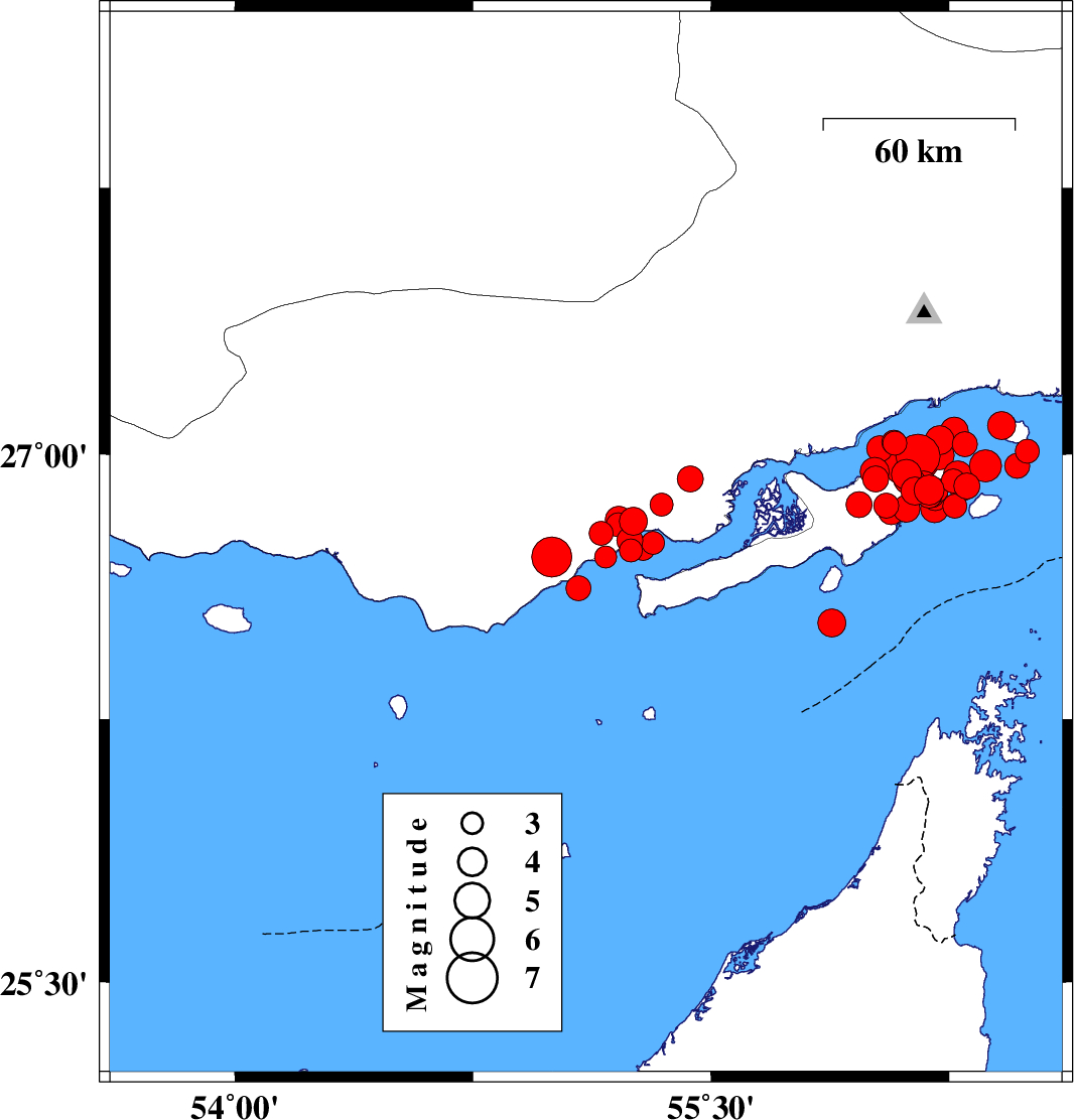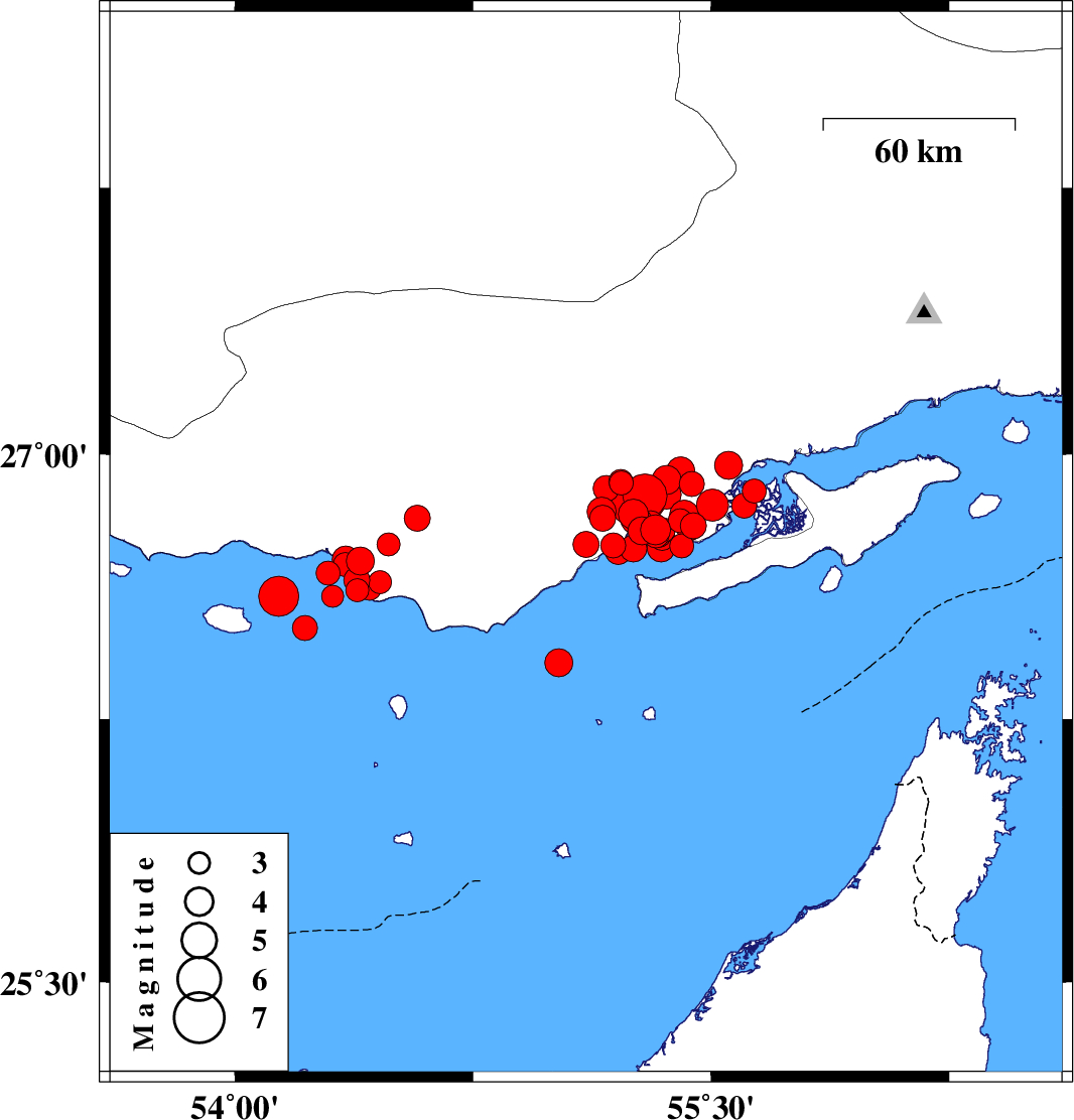 2022/07/01 23:25:18.4 03:55:18.4 26.88255.29219 ML:6.2 Hormozgan Province, 59 km North-East of Bandar-e lengeh
