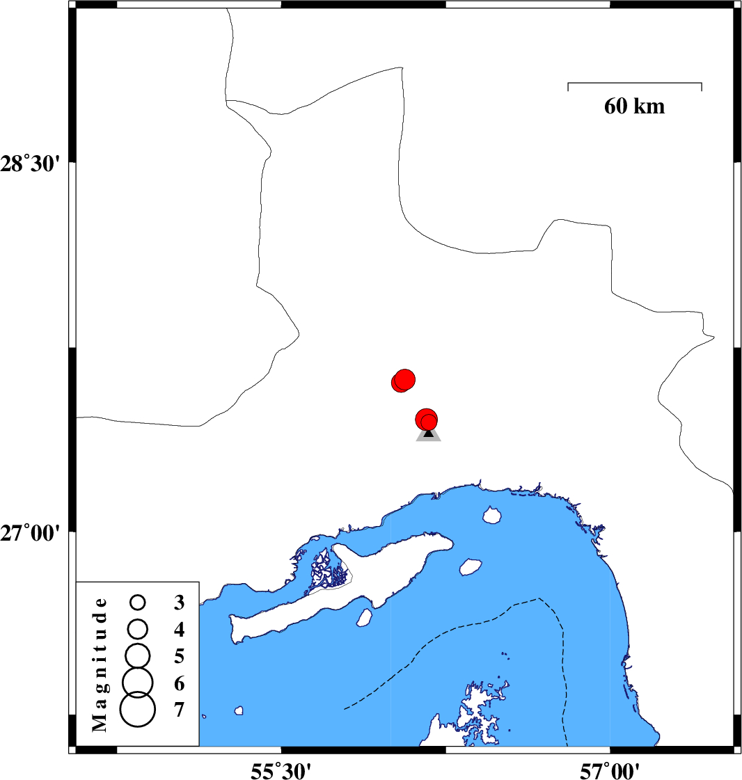 | 2022/11/11 | 10:36:25.2 | 14:06:25.2 | 27.607 | 56.045 | 12 | ML:3.9 | Hormozgan Province, 53 km North-West of Bandar-e abbas |