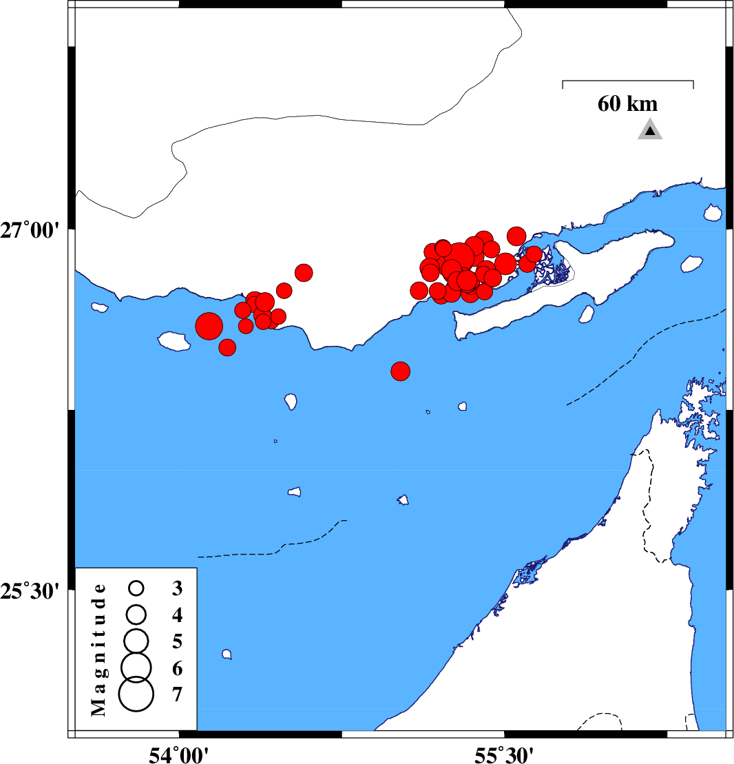 2022/07/02 04:44:40.5 09:14:40.5 26.73455.25512 ML:3.8 Persian Gulf, 47 km North-East of Bandar-e lengeh