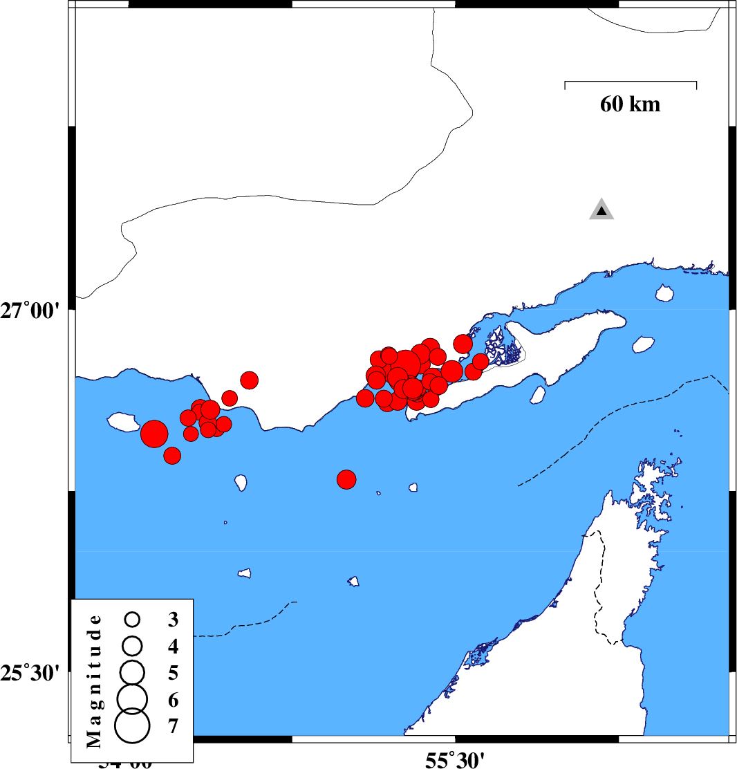 2022/07/02 04:44:40.5 09:14:40.5 26.73455.25512 ML:3.8 Persian Gulf, 47 km North-East of Bandar-e lengeh