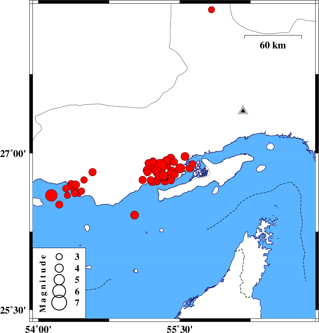 2022/07/01 21:53:22.8 02:23:22.8 26.73555.34312 ML:3.9 Persian Gulf, 54 km North-East of Bandar-e lengeh