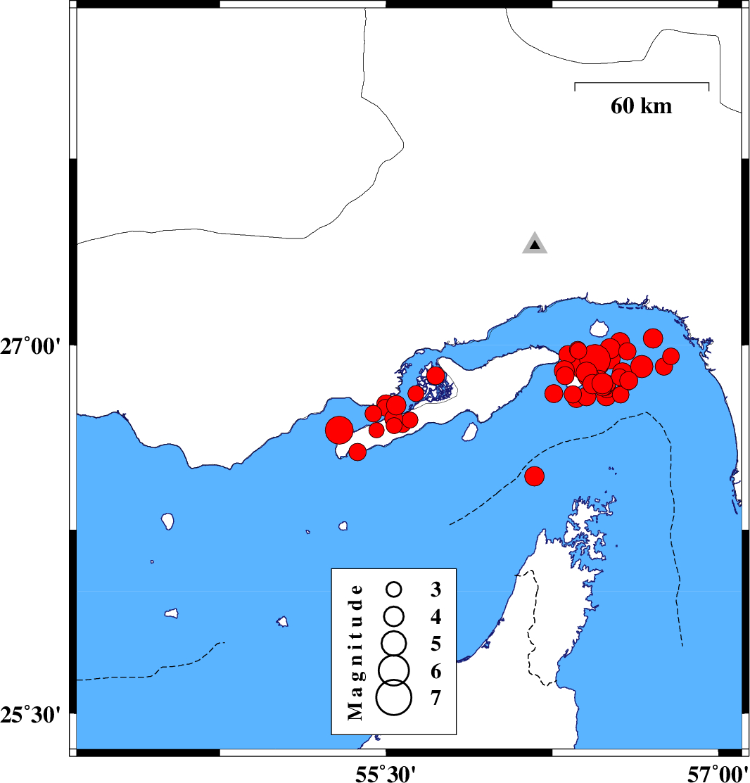 2022/07/01 23:25:18.4 03:55:18.4 26.88255.29219 ML:6.2 Hormozgan Province, 59 km North-East of Bandar-e lengeh