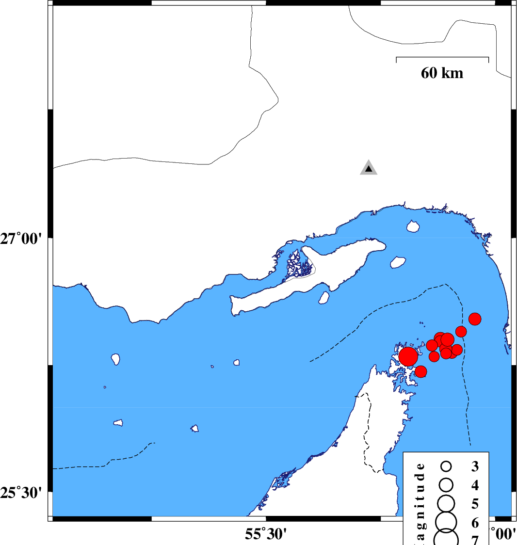 2022/07/01 21:53:22.8 02:23:22.8 26.73555.34312 ML:3.9 Persian Gulf, 54 km North-East of Bandar-e lengeh