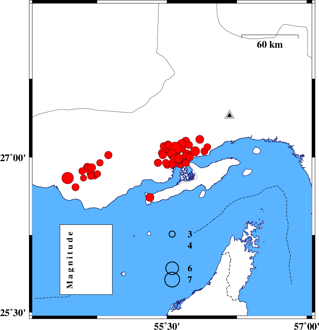 2022/07/02 00:37:39.7 05:07:39.7 26.76655.34616 ML:3.6 Persian Gulf, 56 km North-East of Bandar-e lengeh