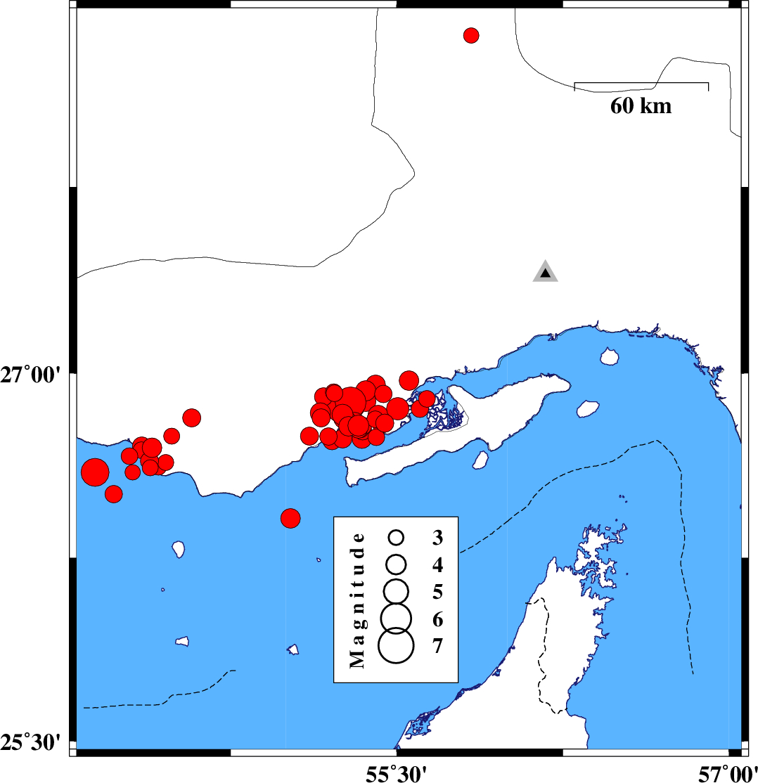 2022/07/01 21:53:22.8 02:23:22.8 26.73555.34312 ML:3.9 Persian Gulf, 54 km North-East of Bandar-e lengeh