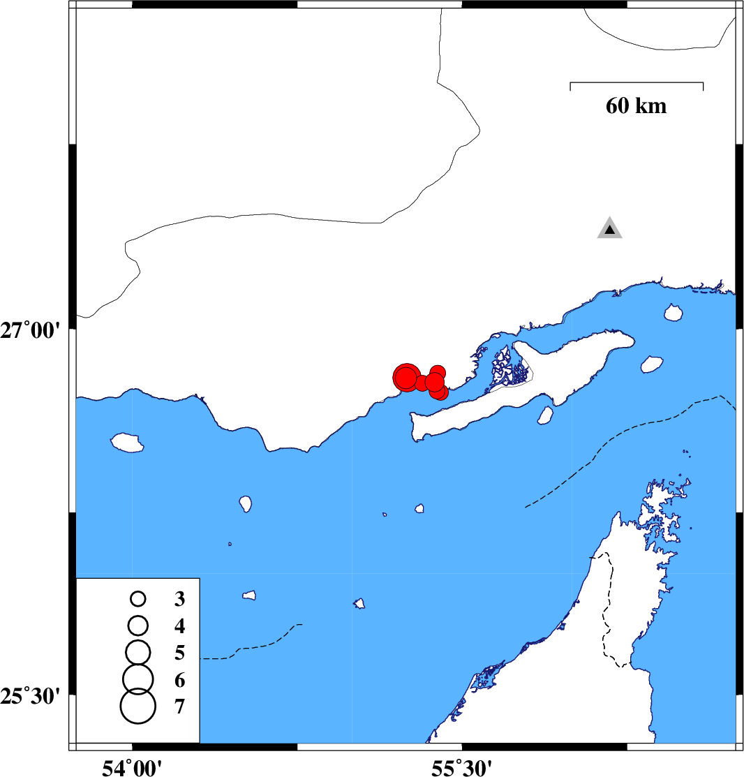 2022/11/30 19:51:26.1 23:21:26.1 26.74755.38516 ML:3.3 Persian Gulf, 59 km North-East of Bandar-e lengeh