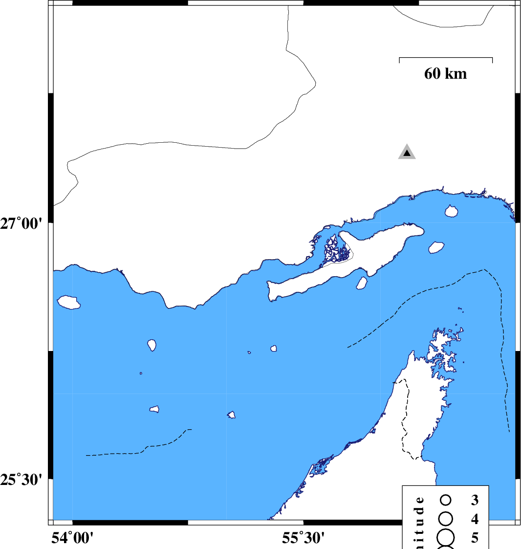 2022/12/01 13:49:55.4 17:19:55.4 26.76155.32212 ML:3.4 Persian Gulf, 54 km North-East of Bandar-e lengeh