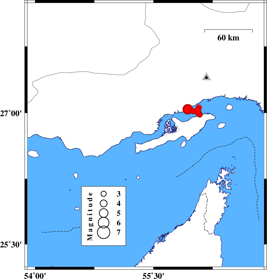 2022/11/30 19:51:26.1 23:21:26.1 26.74755.38516 ML:3.3 Persian Gulf, 59 km North-East of Bandar-e lengeh