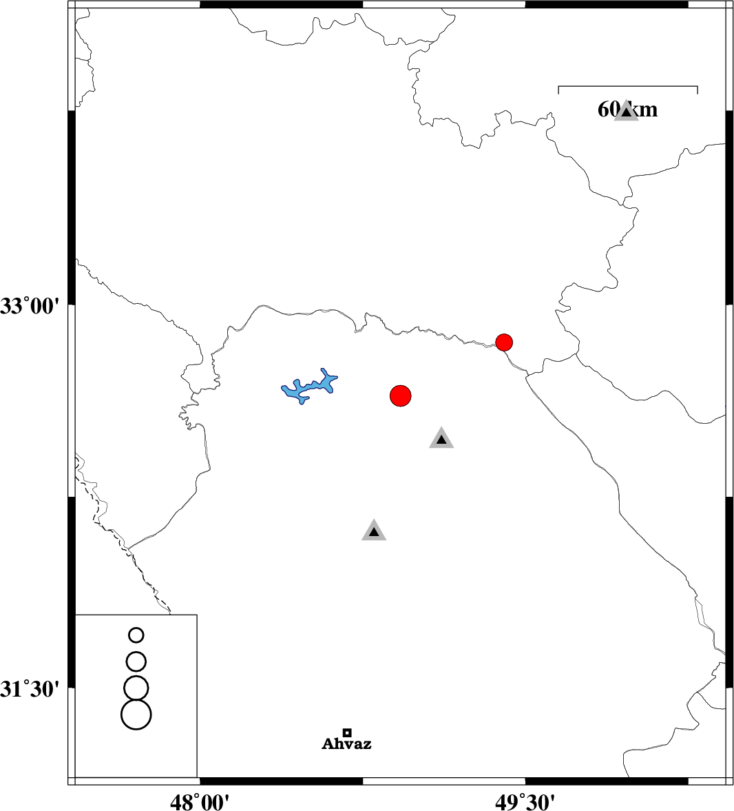 | 2022/12/11 | 08:05:59.1 | 11:35:59.1 | 32.644 | 48.923 | 10 | ML:4.4 | Khoozestan Province, 33 km North-West of Lali | ||