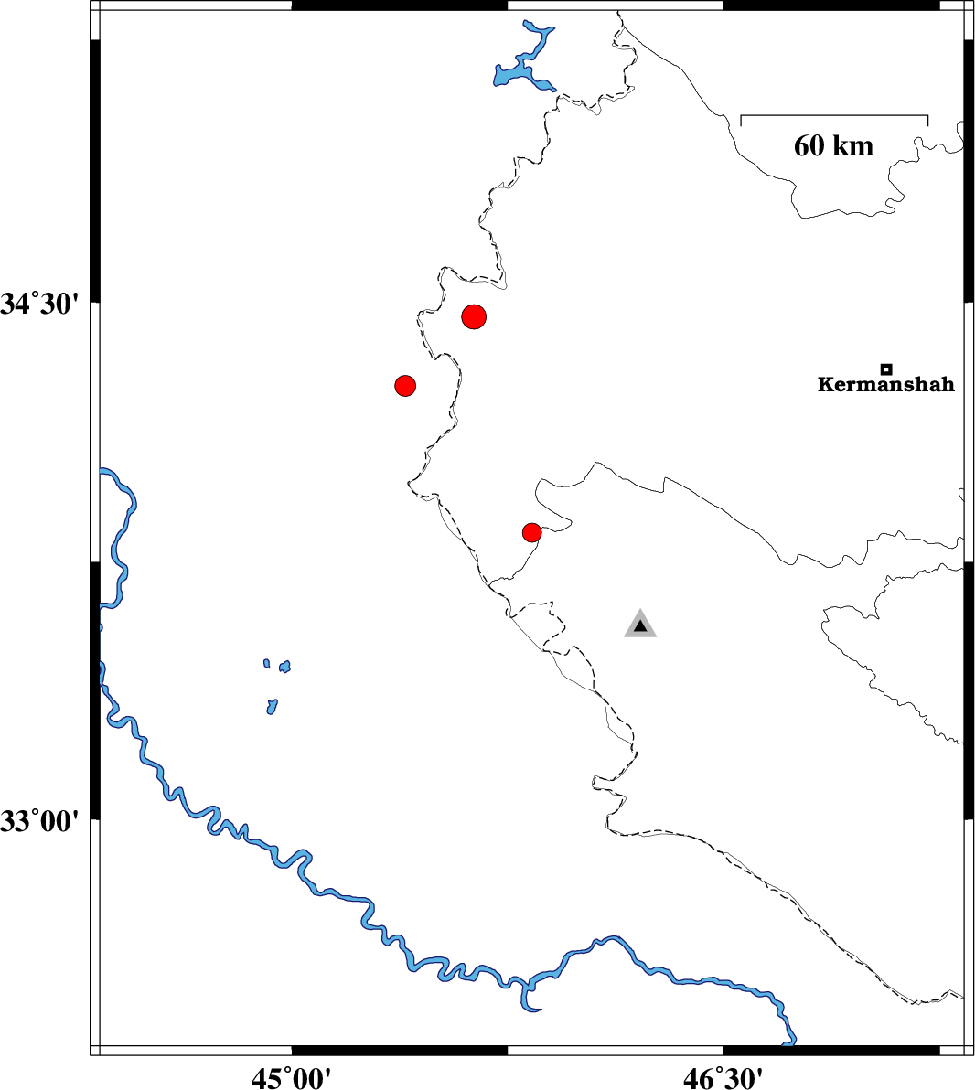 | 2022/11/21 | 01:14:52.5 | 04:44:52.5 | 34.258 | 45.395 | 7 | ML:3.2 | Iraq, 33 km South-West of Qasr-E-Shirin |
