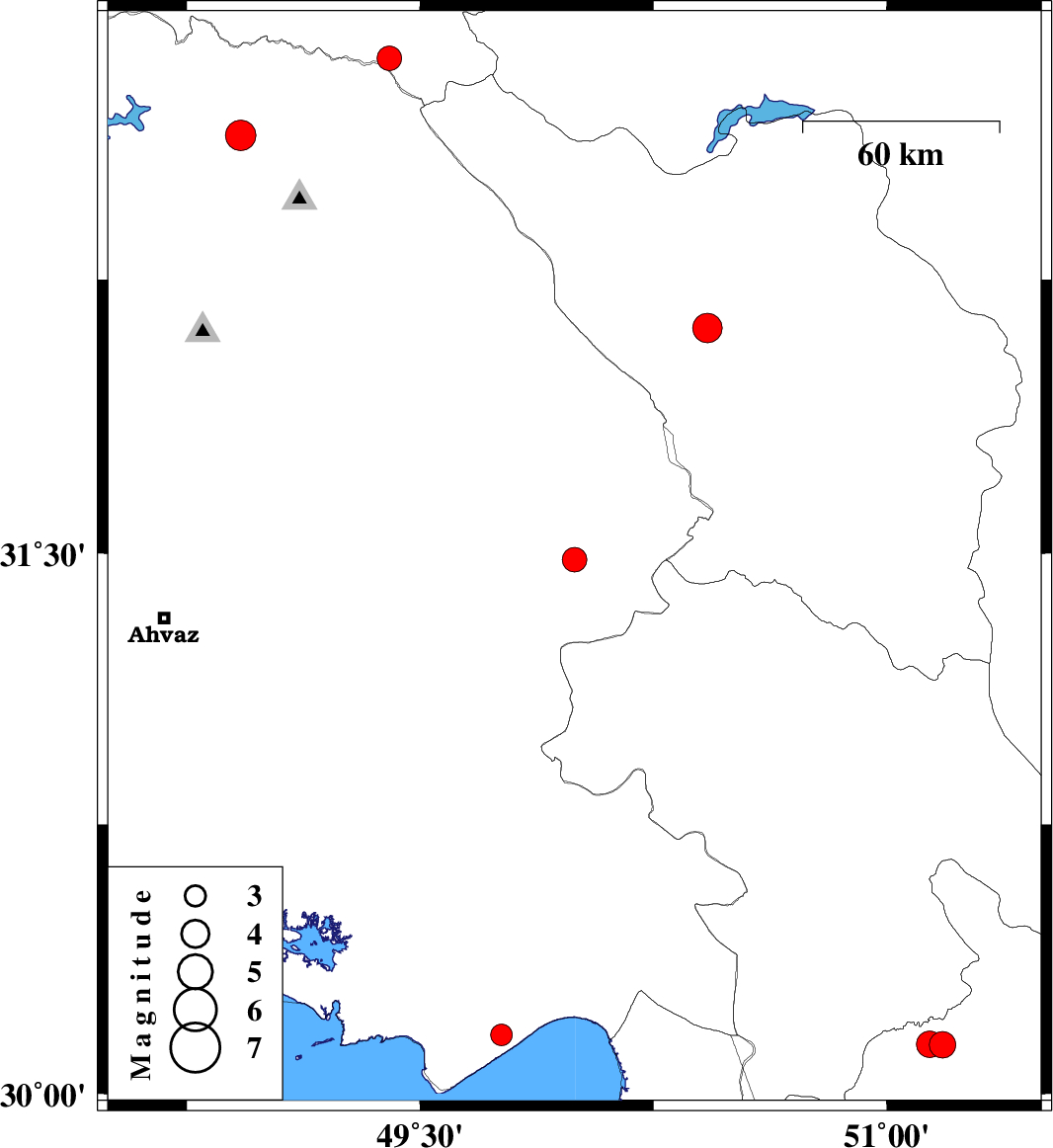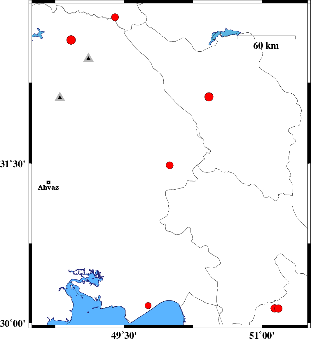| 2022/11/25 | 06:56:09.5 | 10:26:09.5 | 30.164 | 49.761 | 12 | ML:3.1 | Khoozestan Province, 9 km of Hendijan |