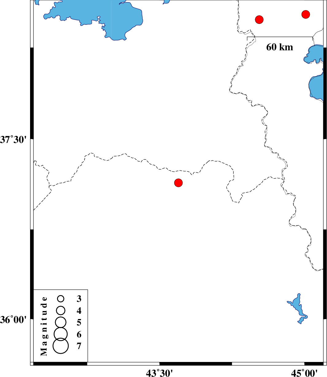 | 2022/12/16 | 00:09:56.2 | 03:39:56.2 | 37.137 | 43.695 | 12 | ML:3.8 | Iraq | ||