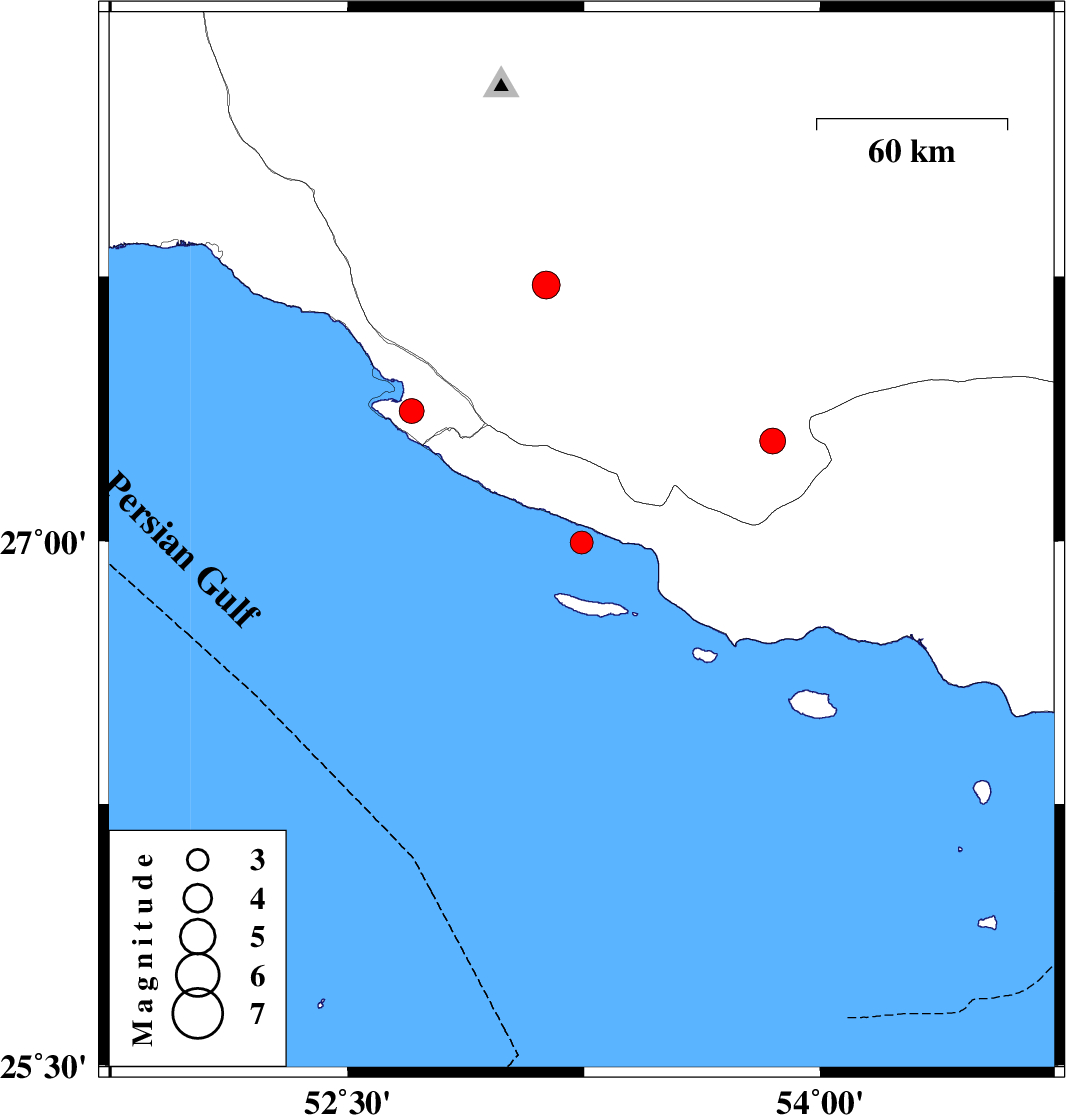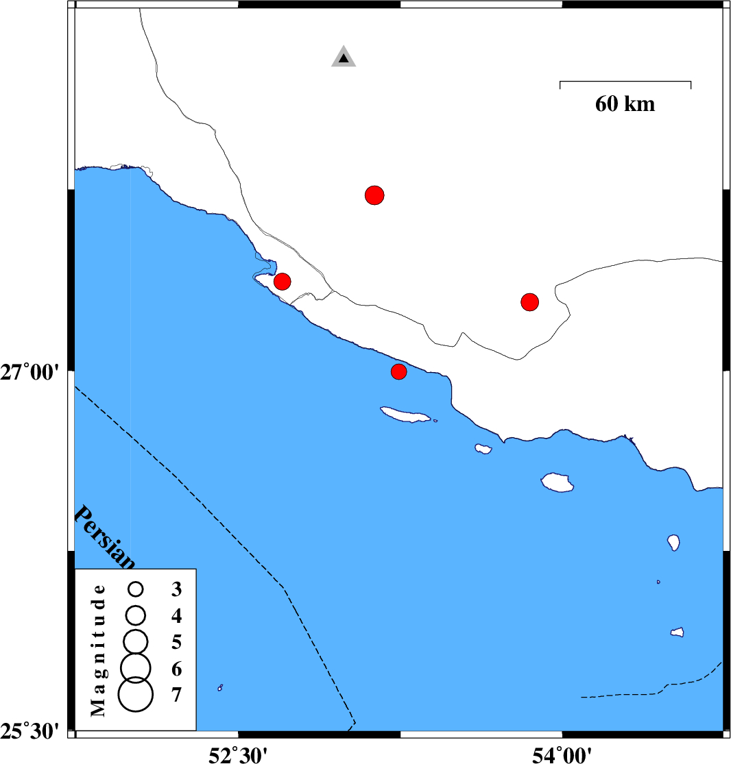 | 2022/12/15 | 00:43:12.0 | 04:13:12.0 | 26.996 | 53.242 | 7 | ML:3.3 | Persian Gulf, 38 km South of Lamerd | ||