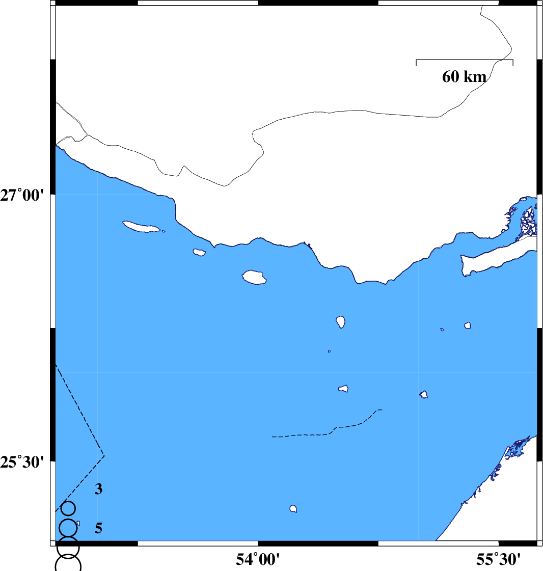 Persian Gulf, 65 km South-West of Bandar-e lengeh | |