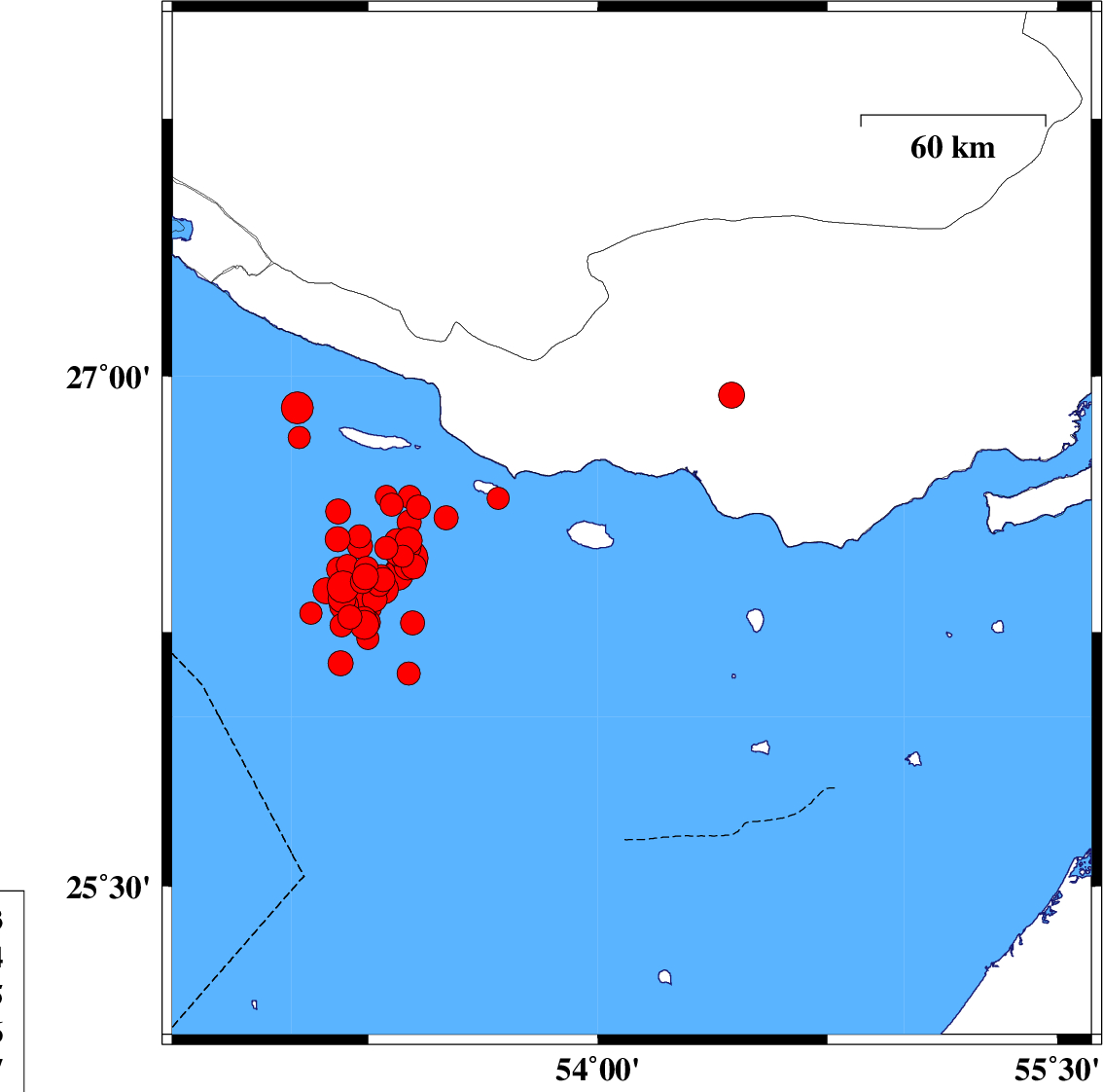 2022/06/16 11:18:16.2 15:48:16.2 26.65354.27912 ML:3.5 Persian Gulf, 61 km South of Bastak