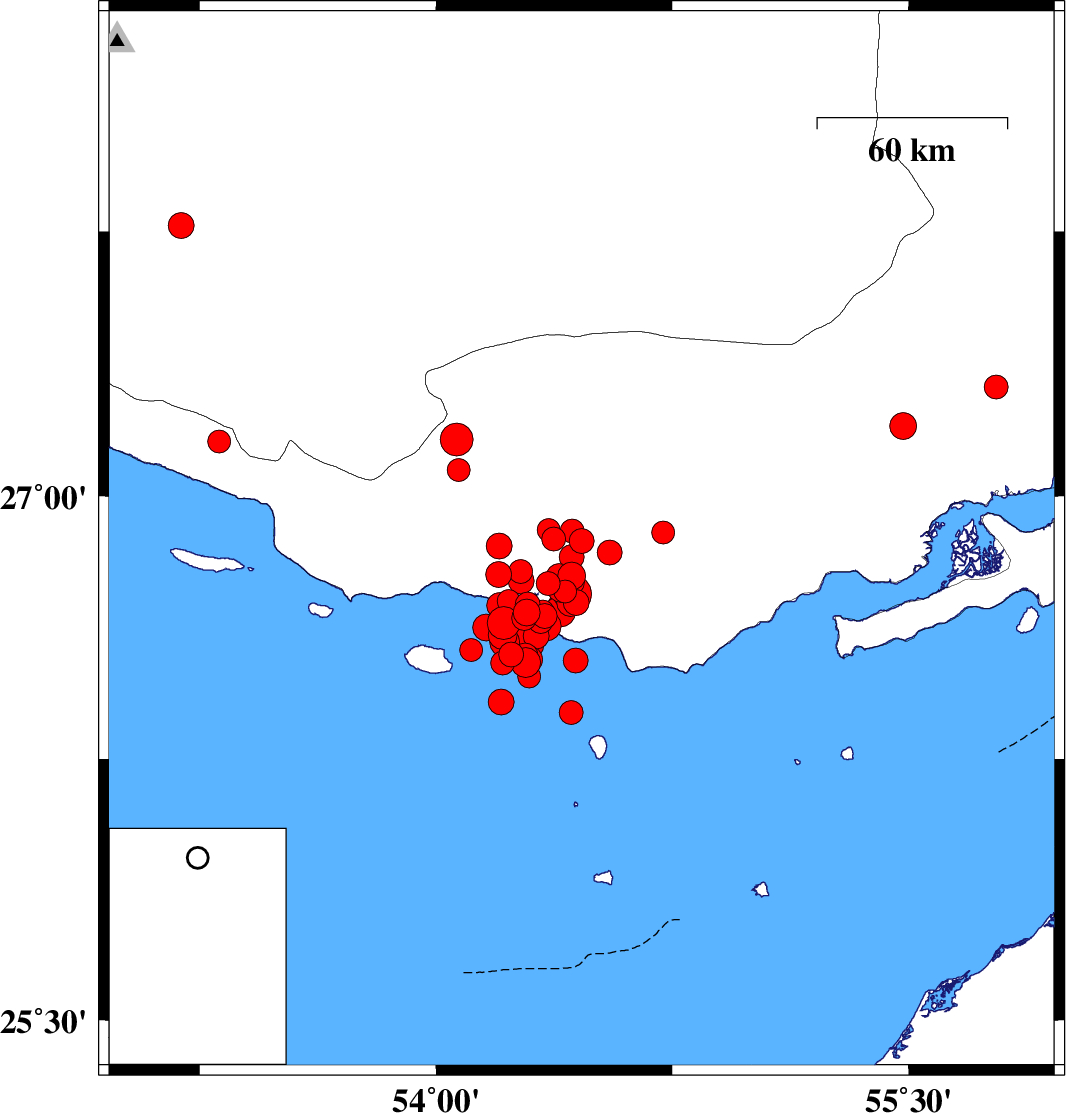 Persian Gulf, 61 km -West of Bandar-e lengeh | |