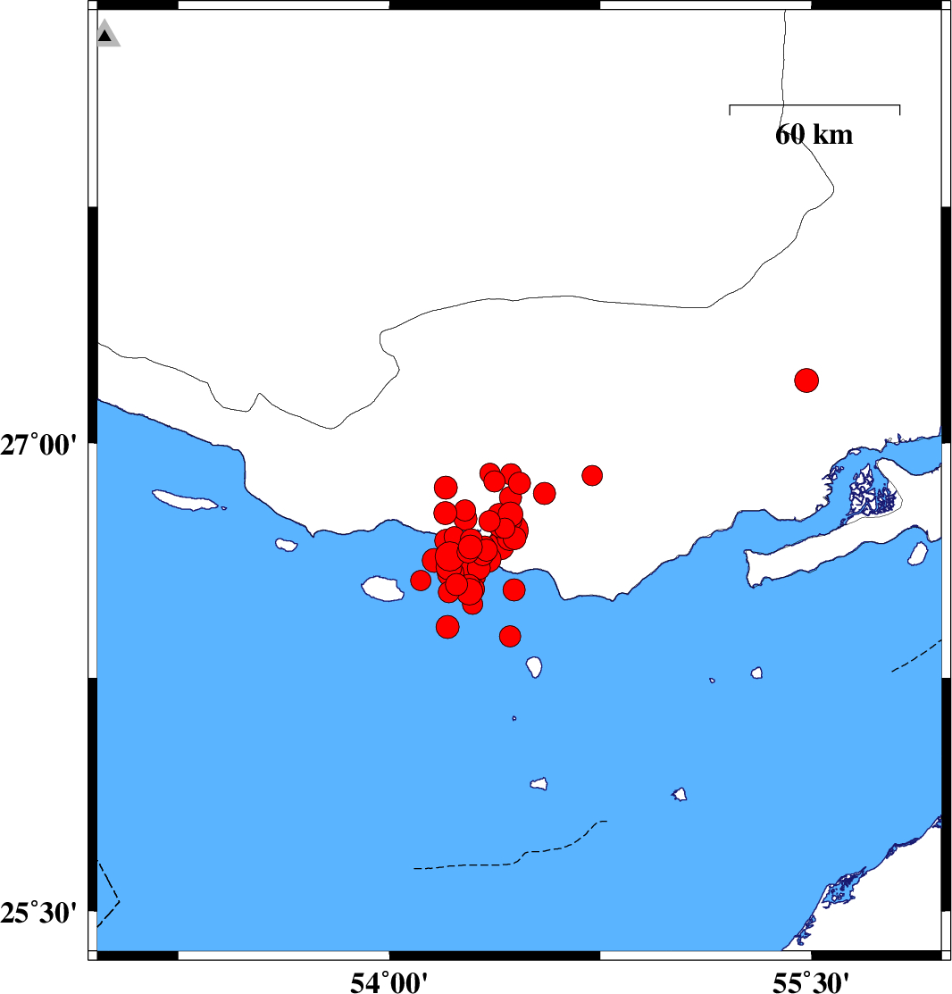 2022/06/16 11:18:16.2 15:48:16.2 26.65354.27912 ML:3.5 Persian Gulf, 61 km South of Bastak