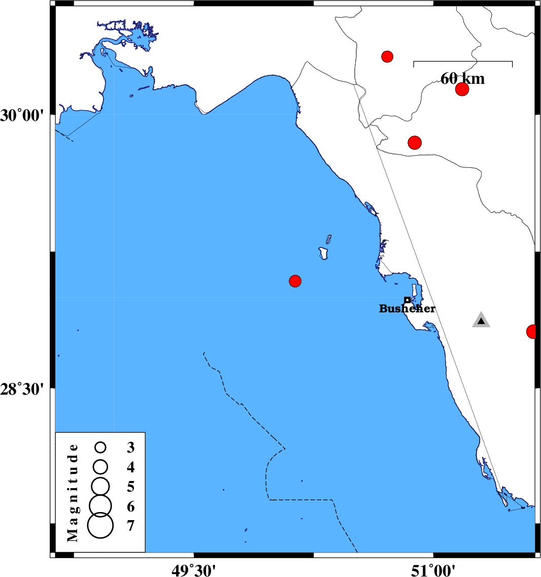 | 2023/01/04 | 15:22:28.9 | 18:52:28.9 | 29.089 | 50.134 | 12 | ML:3.4 | Persian Gulf, 69 km North-West of Busheher | ||