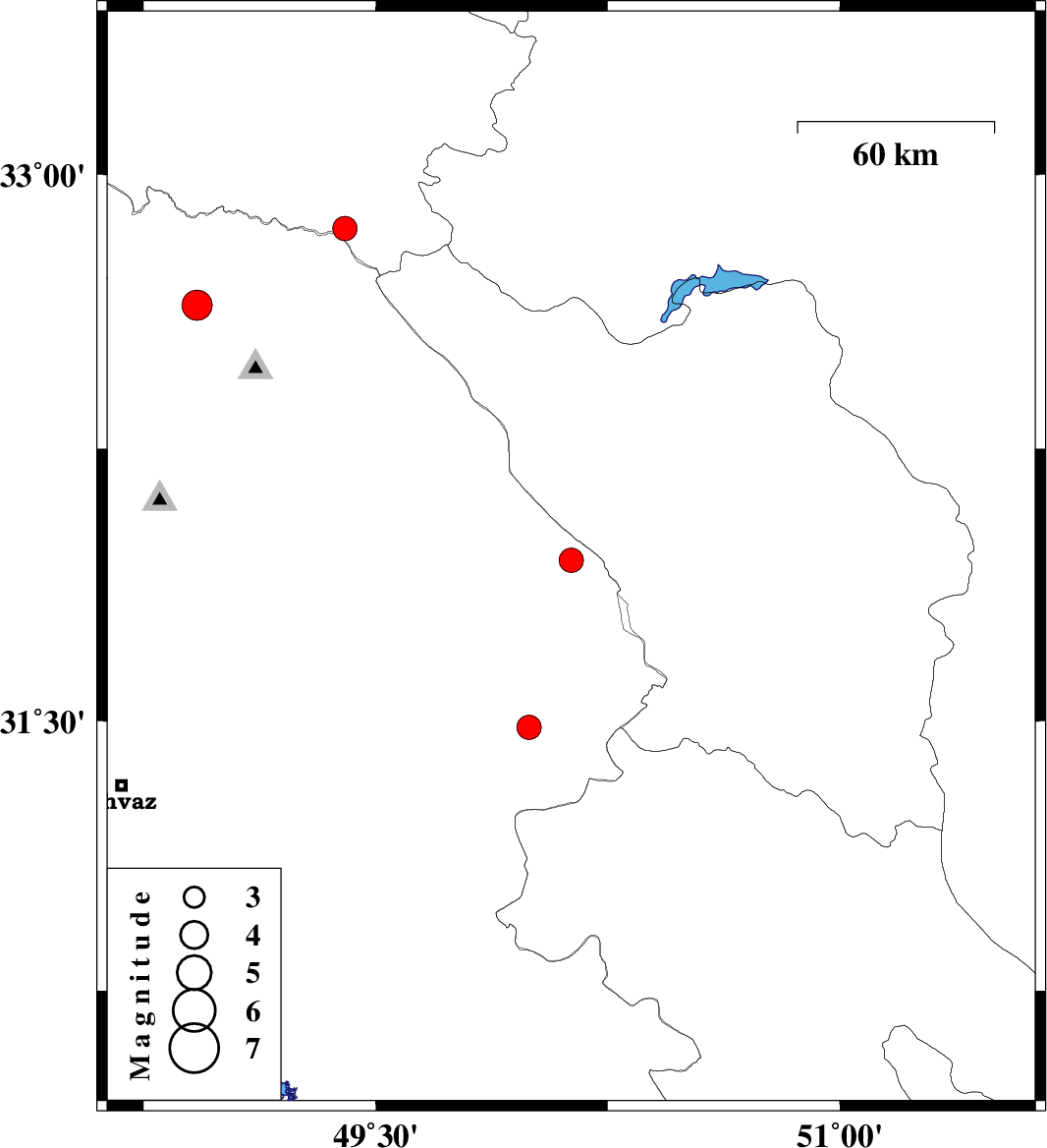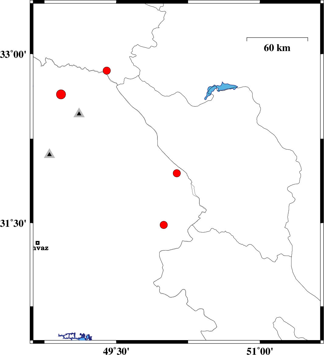 | 2023/01/02 | 13:56:27.8 | 17:26:27.8 | 31.944 | 50.132 | 15 | ML:3.5 | Khoozestan Province, 28 km North-East of Izeh | ||