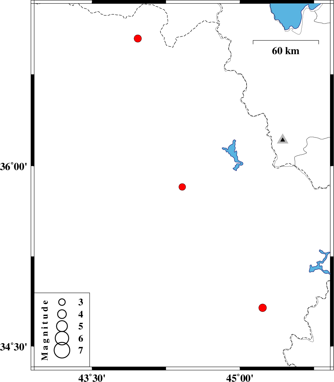 | 2023/01/11 | 03:05:41.8 | 06:35:41.8 | 37.042 | 43.965 | 12 | ML:3.4 | Iraq |