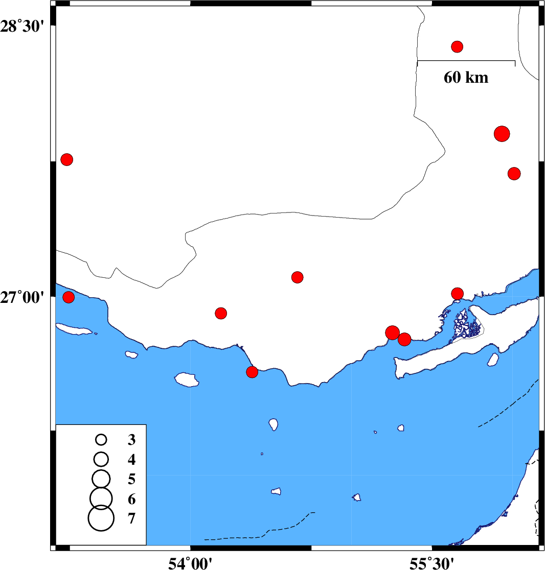 Persian Gulf, 54 km North-East of Bandar-e lengeh | |