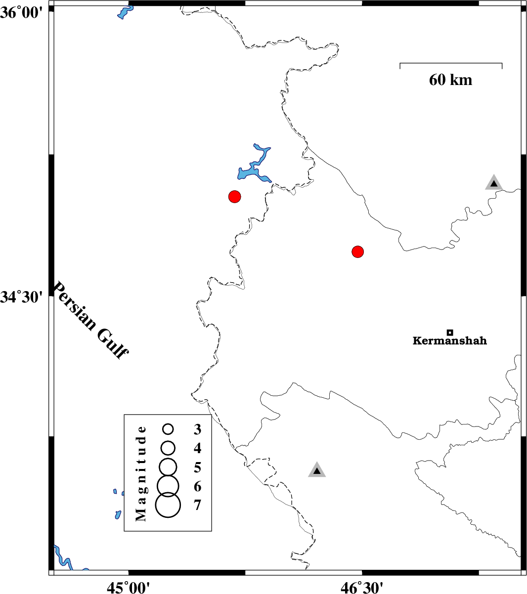 | 2023/01/18 | 07:02:27.3 | 10:32:27.3 | 34.53 | 46.021 | 12 | ML:3.4 | Kermanshah Province, 14 km -East of Sar-e pol-e zahab | ||