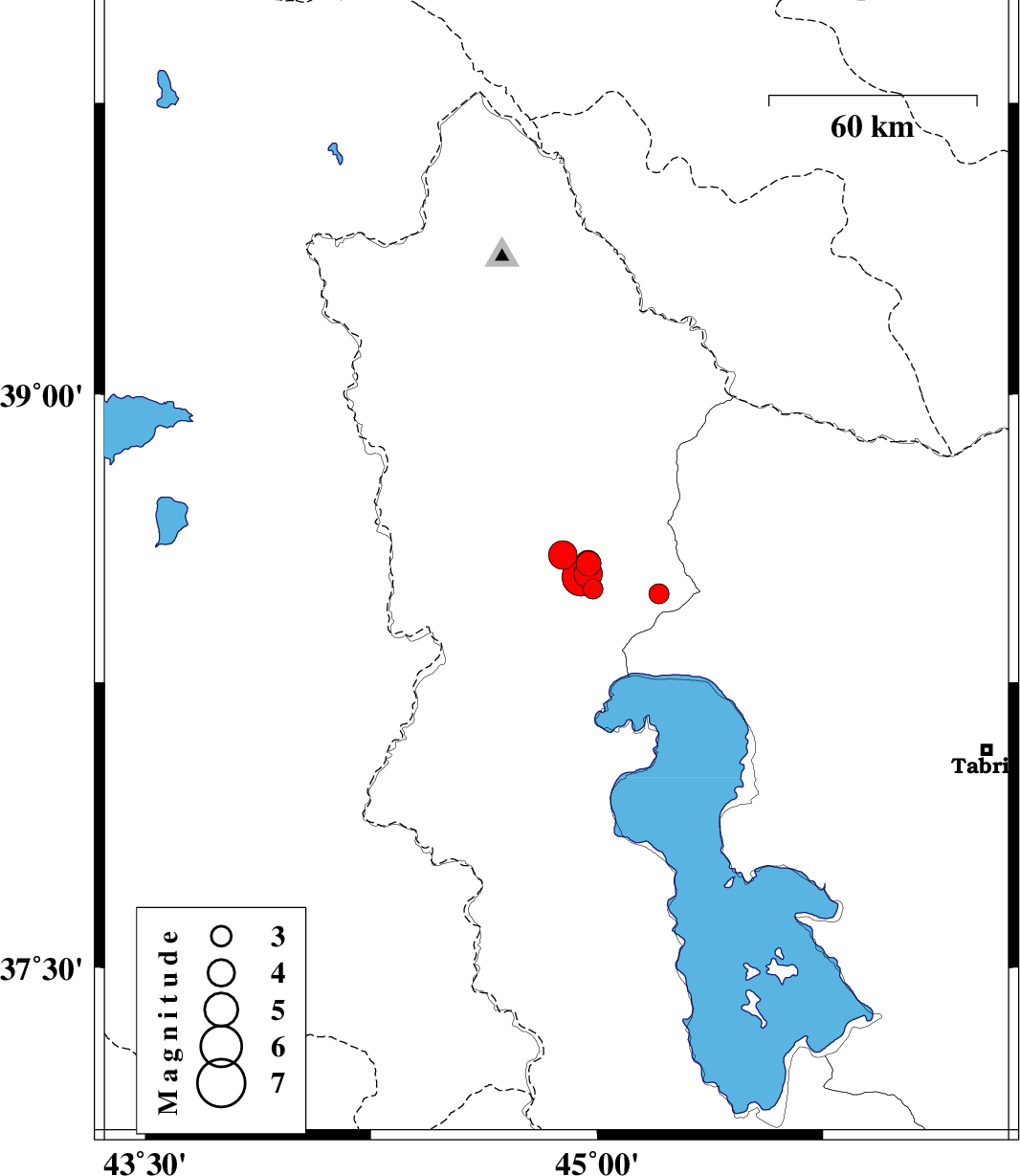 | 2023/01/18 | 09:49:39.9 | 13:19:39.9 | 38.573 | 44.864 | 12 | ML:3.6 | Azarbaijan Gharbi Province, 8 km of Khoy | ||