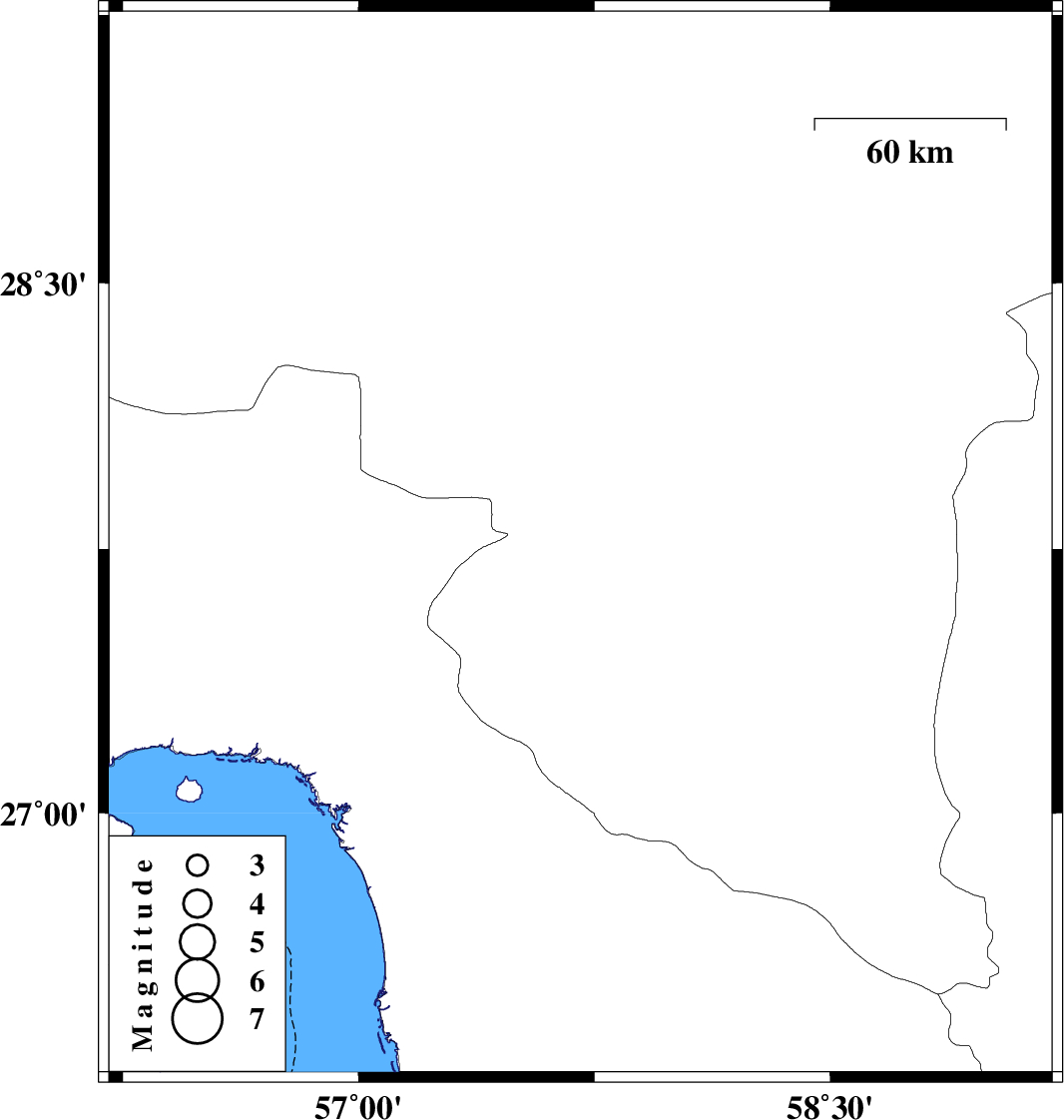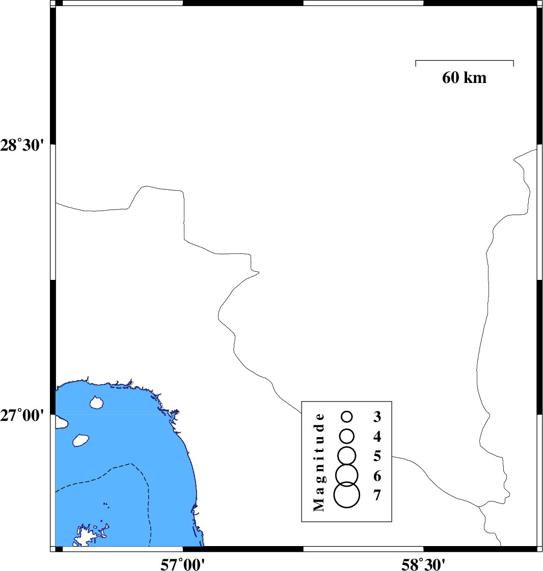 | 2023/01/25 | 17:19:00.8 | 20:49:00.8 | 27.761 | 57.706 | 12 | ML:3.3 | Kerman Province, 21 km South of Kahnuj |