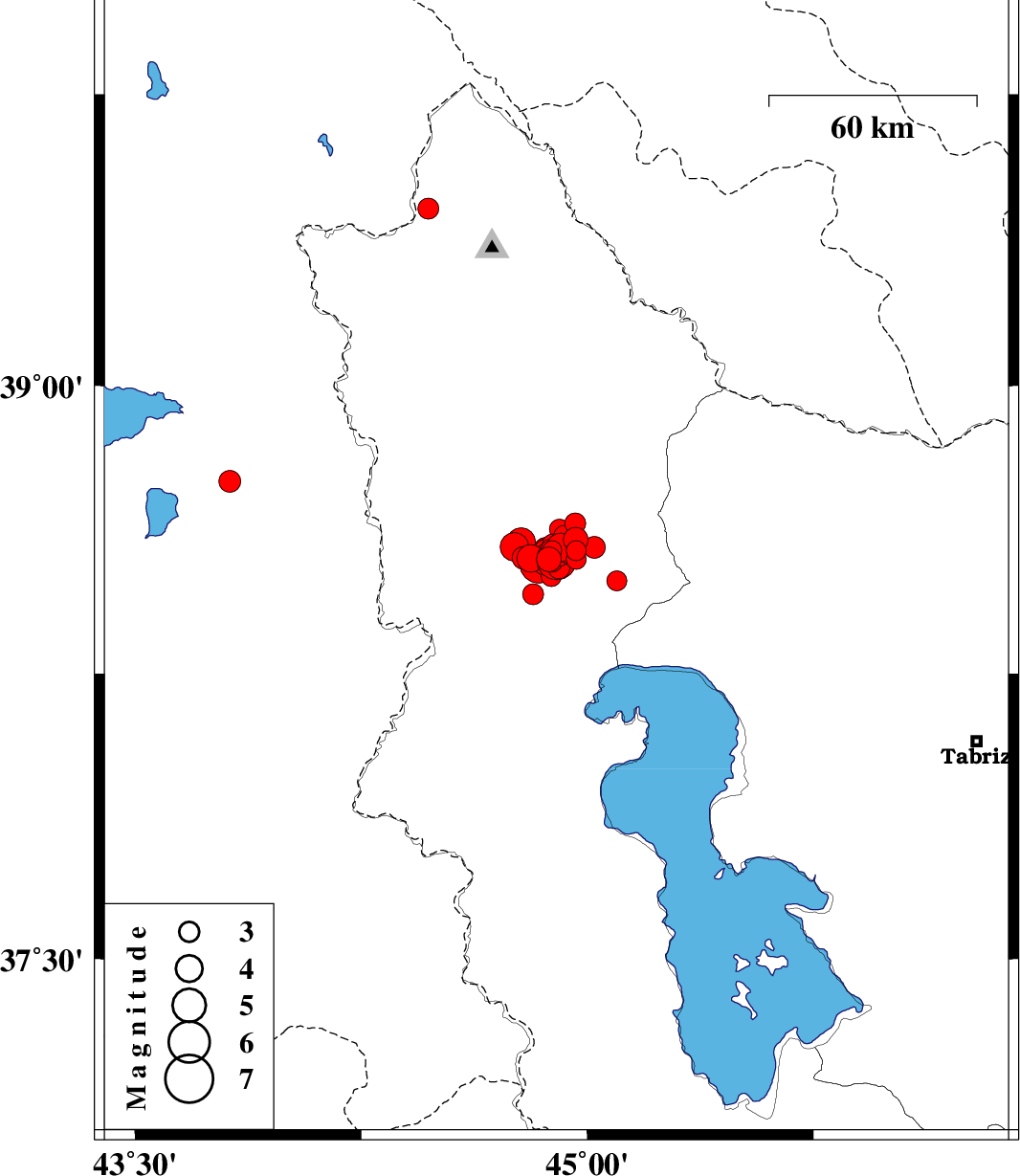2023/01/20 15:13:42.5 18:43:42.5 38.55144.81210 ML:4.1 Azarbaijan Gharbi Province, 12 km -West of Khoy