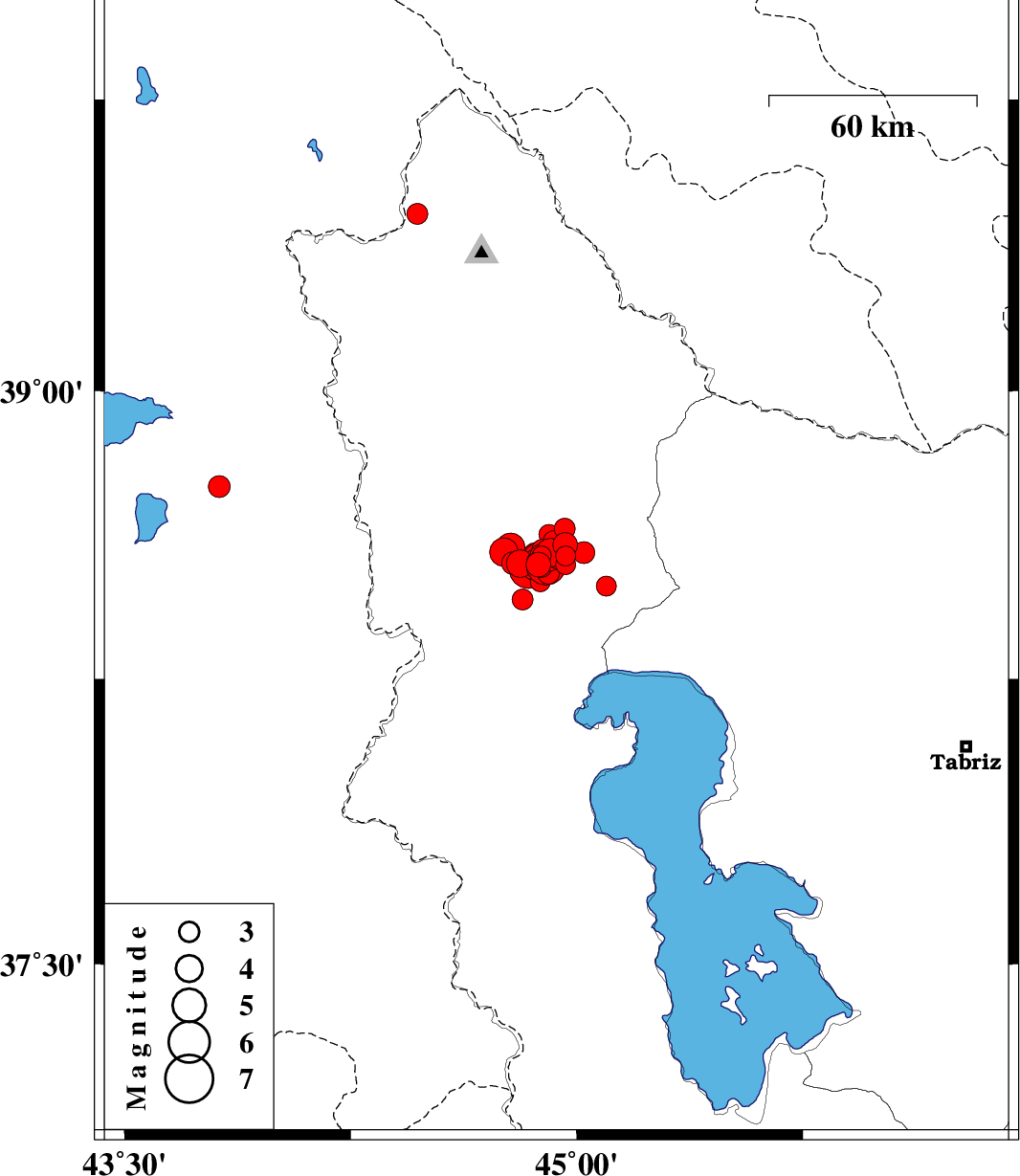 2023/01/20 15:13:42.5 18:43:42.5 38.55144.81210 ML:4.1 Azarbaijan Gharbi Province, 12 km -West of Khoy