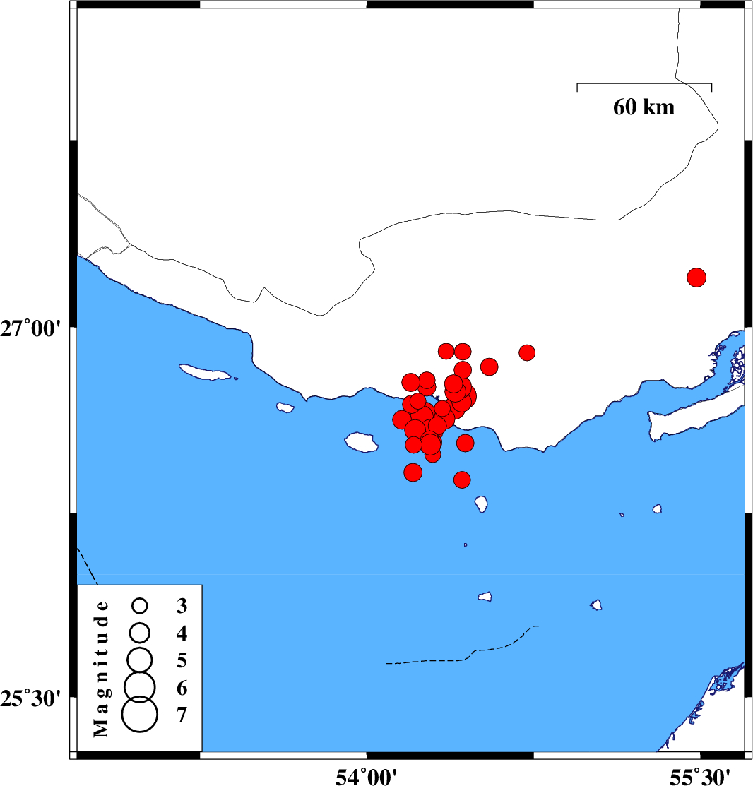 2022/06/15 19:53:54.8 00:23:54.8 26.68954.20212 ML:3.6 Persian Gulf, 59 km South-West of Bastak