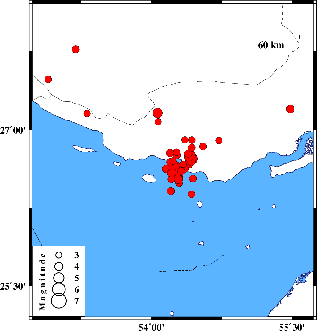 2022/06/15 19:53:54.8 00:23:54.8 26.68954.20212 ML:3.6 Persian Gulf, 59 km South-West of Bastak