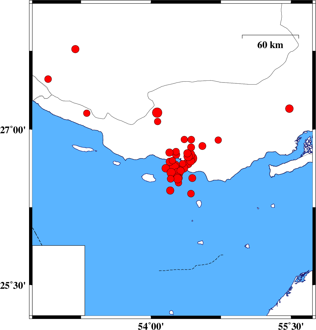 2022/06/15 09:37:45.2 14:07:45.2 26.62654.15912 ML:3.8 Persian Gulf, 67 km South-West of Bastak