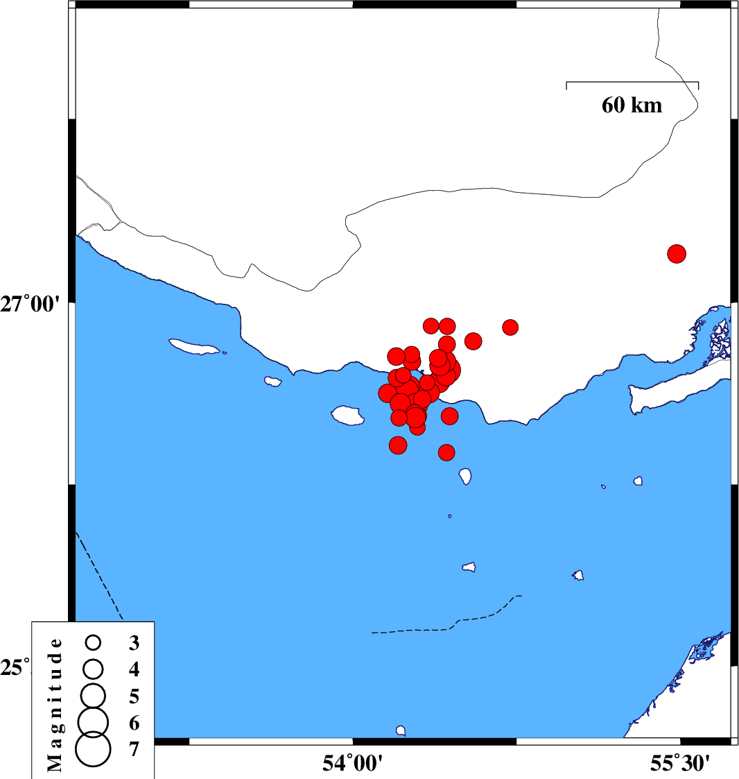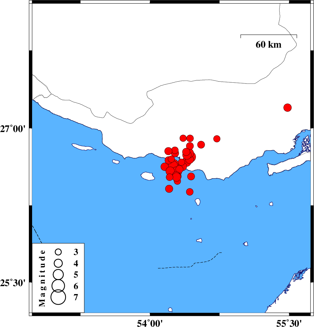 2022/06/15 19:53:54.8 00:23:54.8 26.68954.20212 ML:3.6 Persian Gulf, 59 km South-West of Bastak