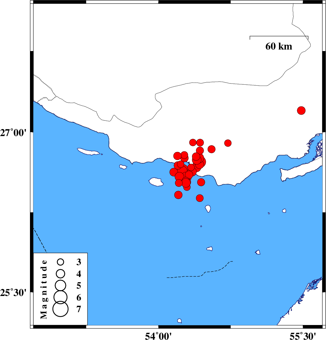 2022/06/15 19:53:54.8 00:23:54.8 26.68954.20212 ML:3.6 Persian Gulf, 59 km South-West of Bastak