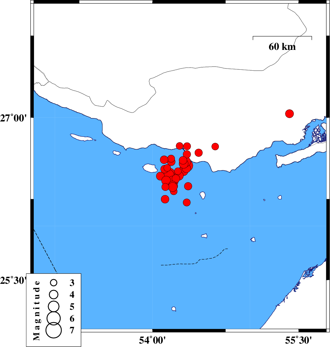 2022/06/15 19:53:54.8 00:23:54.8 26.68954.20212 ML:3.6 Persian Gulf, 59 km South-West of Bastak