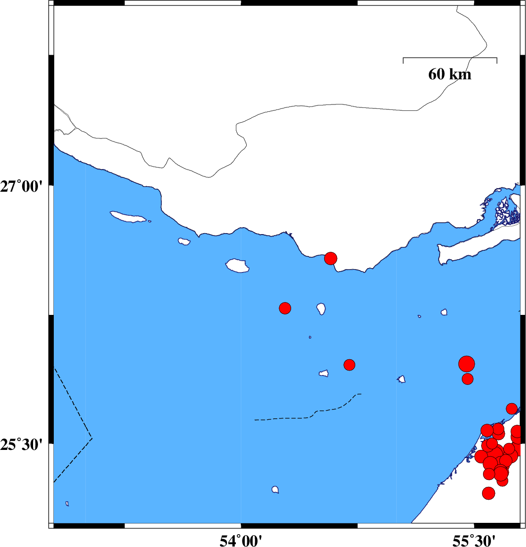 Persian Gulf, 45 km South-West of Bandar-e lengeh | |