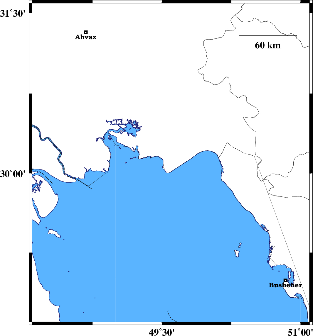 | 2023/02/04 | 16:00:51.4 | 19:30:51.4 | 30.09 | 49.587 | 12 | ML:3.9 | Khoozestan Province, 20 km South-West of Hendijan | ||