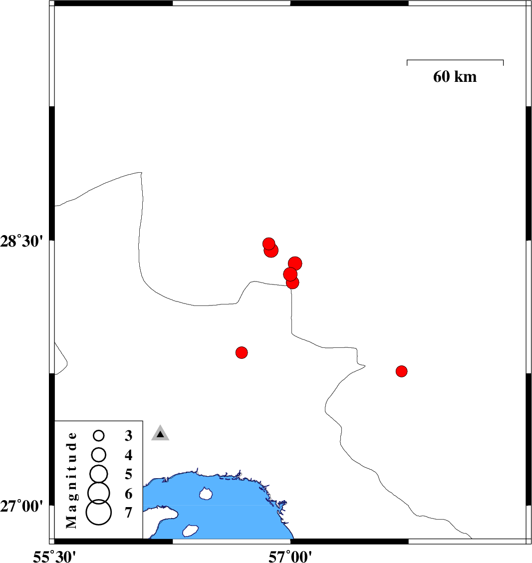 | 2023/02/09 | 13:07:51.5 | 16:37:51.5 | 27.866 | 56.688 | 7 | ML:3.4 | Hormozgan Province, 73 km North-West of Dehbarez | ||